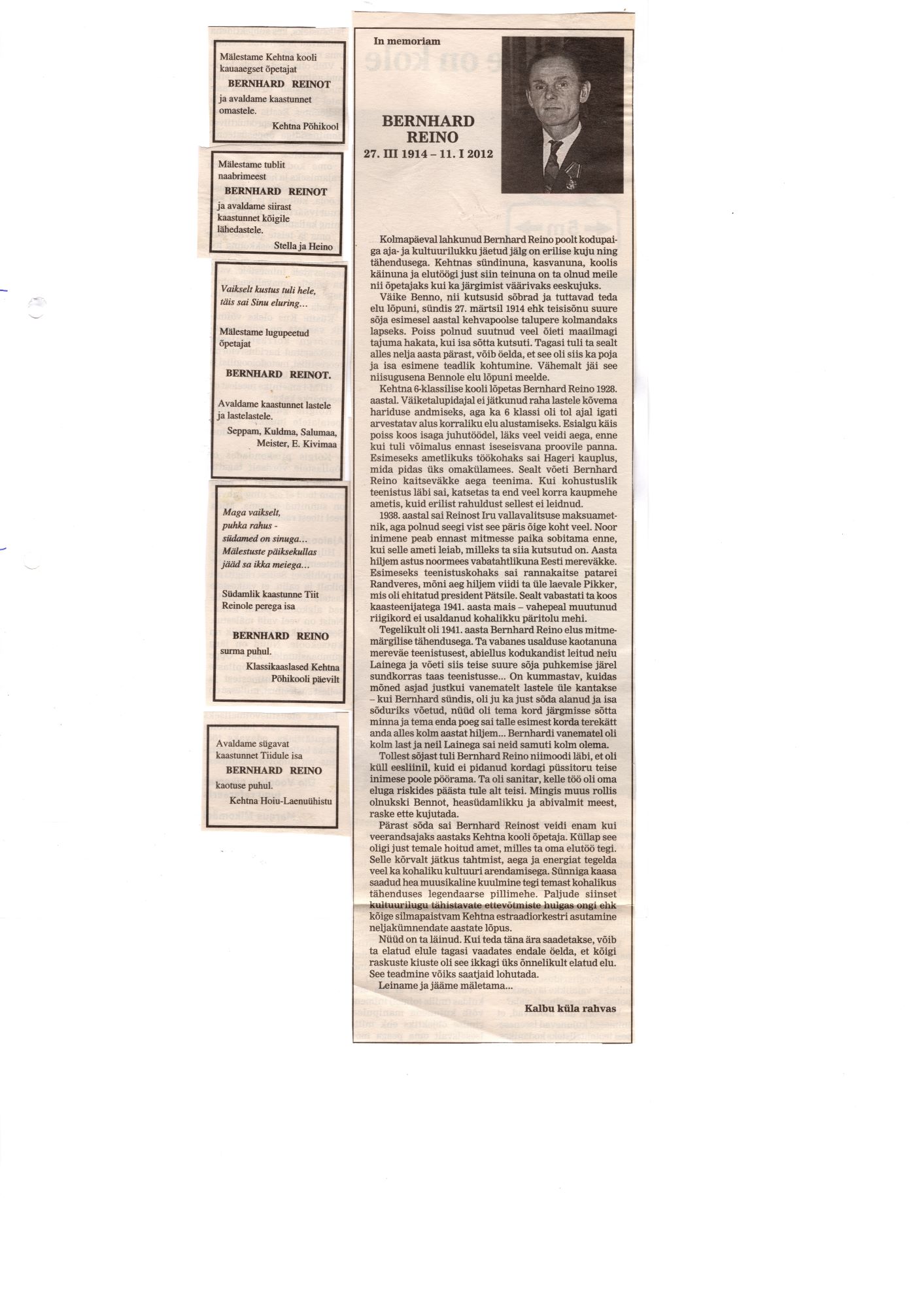 Bernhard Reino (27. märts 1914 - 11. jaan. 2012)