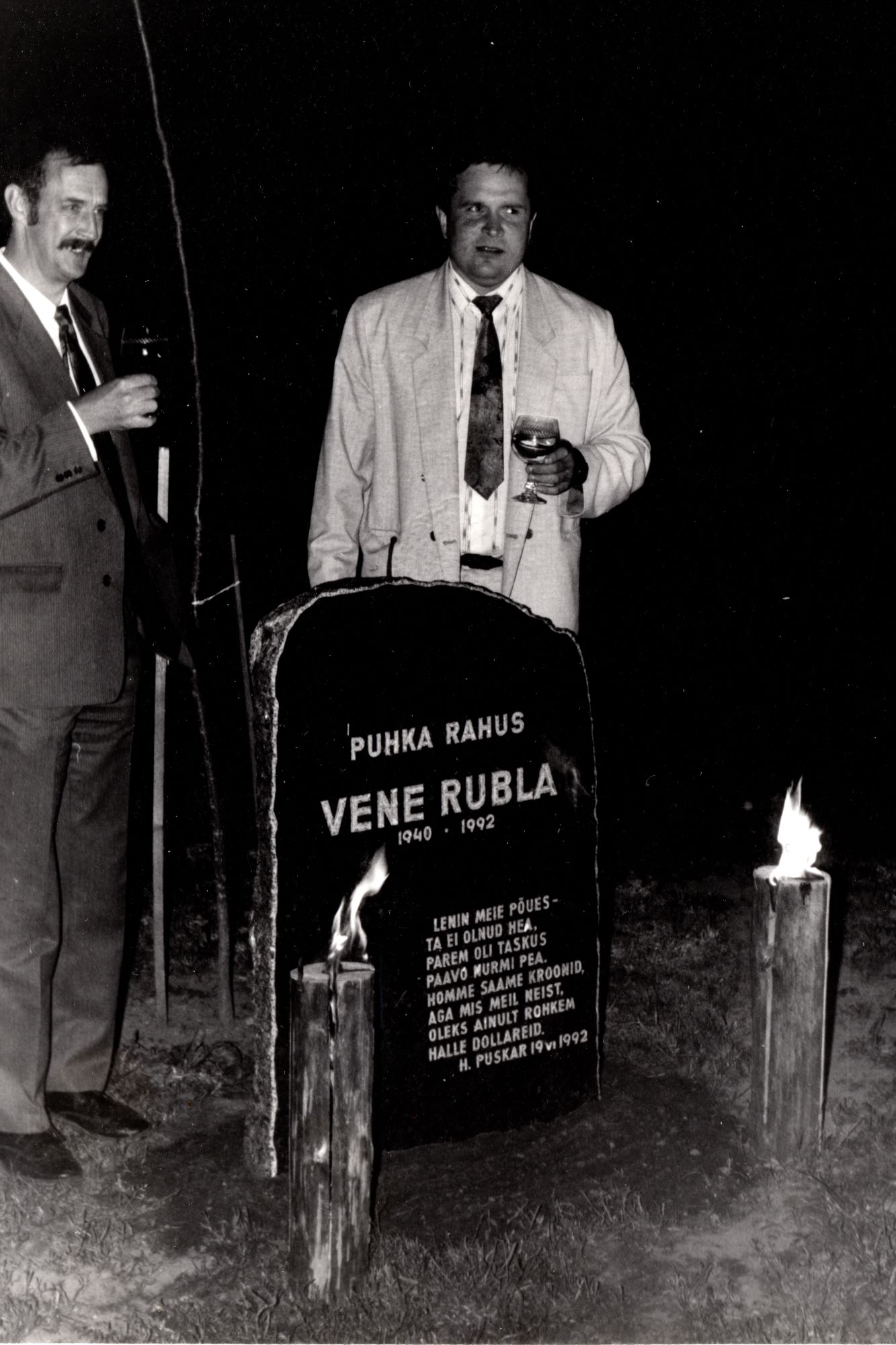 1992. aasta 16. juuni keskööl, kui Eesti sai oma raha – krooni, kogunes rahvahulk postijaama hoovi viimast rubla matma.
