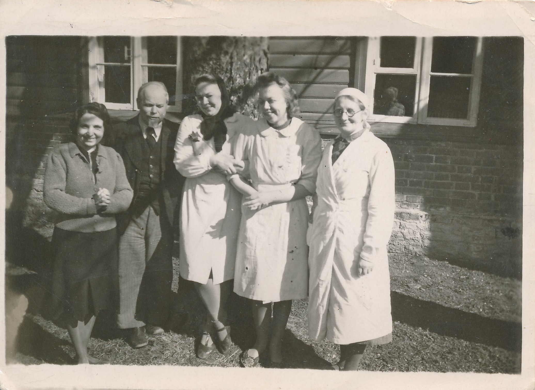 Fotol keskel juhataja Rudolf Weinberg, tema kõrval Magda Villard (rätikuga) Pildistatud Rapla tollase apteegimaja ees (aadressil Tallinna mnt 15) 1944. a.