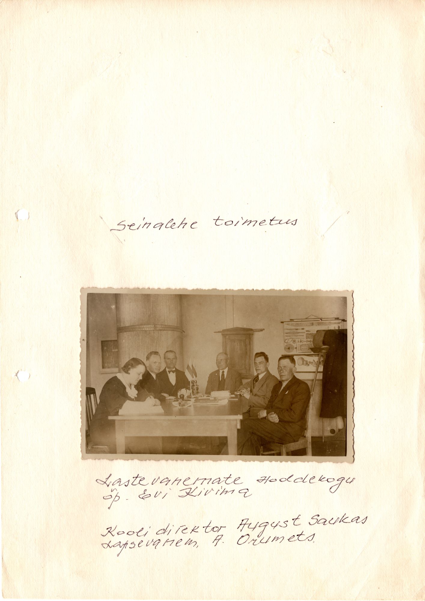 Kehtna algkooli Lastevanemate Hooldekogu ilmselt 1930ndatel. Pildil ka õpetaja Evi Kivimaa ja koolijuhataja August Saukas.
