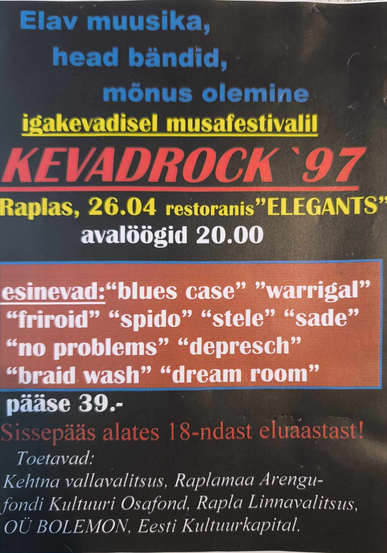Ülevaade 1998 aasta Rapla Kevadrockist. Artikkel Nädalises (16. mai 1998) Rapla Kevadrock'97 plakat ja kuulutus Nädalises. Rapla Kevadrocki algus 1993. aastal Keava Kevadrock'ina.