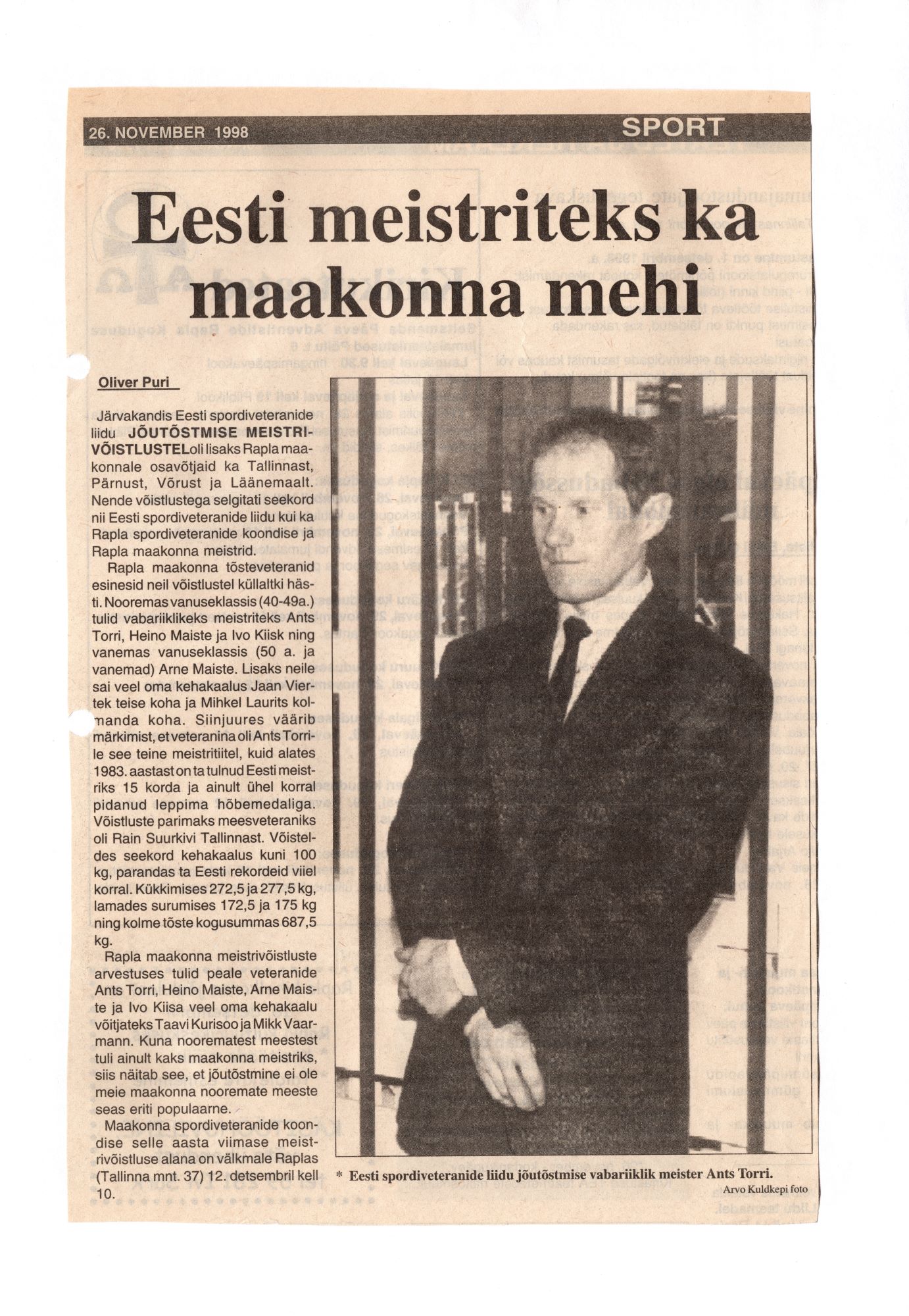 Raplamaa, spordiveteranid, meistrivõistlused, tõstmine, artiklid
