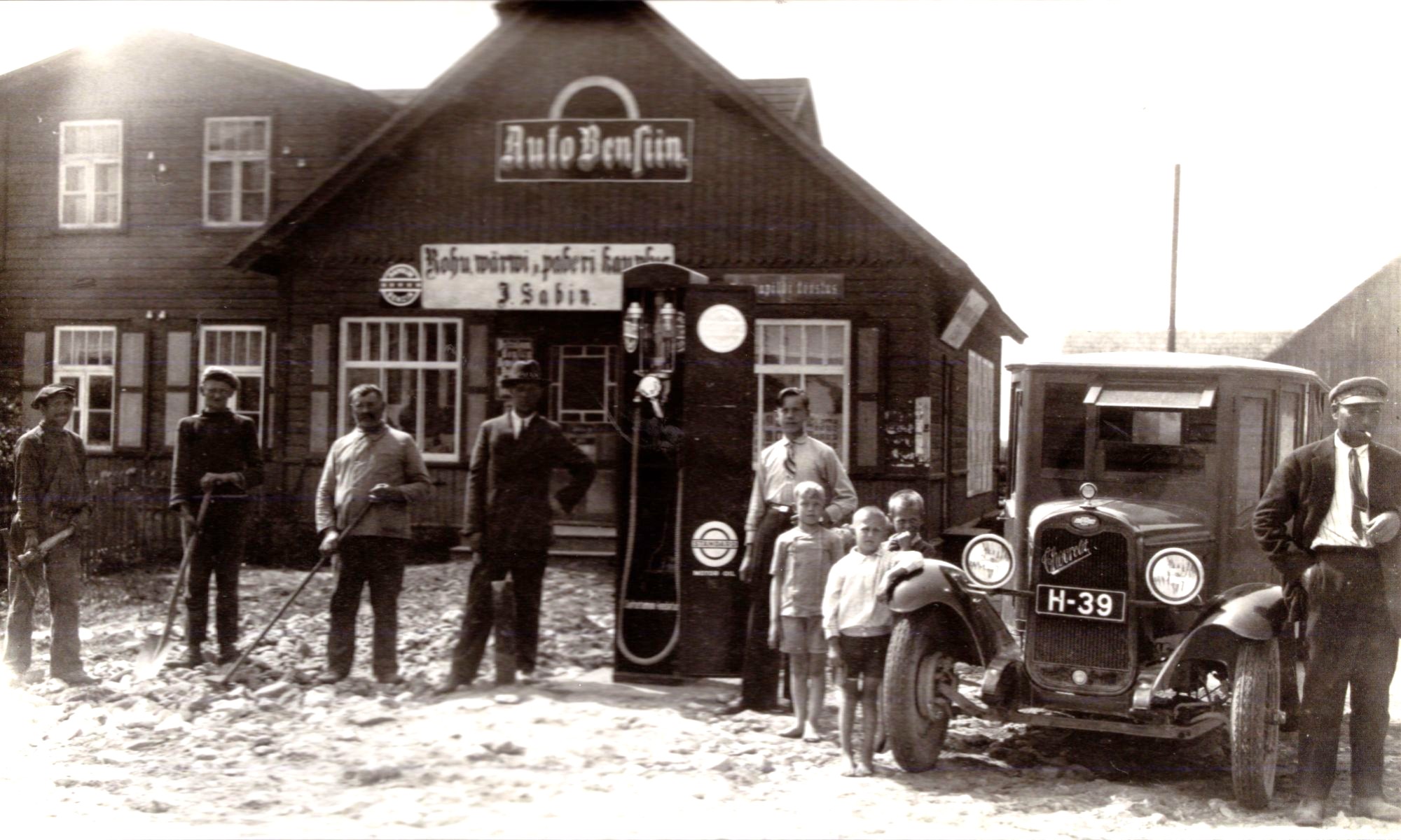 Johannes Sabin - Rohu, värvi ja paberi kauplus, kus müüdi ka autobensiini. Aeg ilmselt 1930ndate algus. Pärast Johannese surma 1933. aastal pidas kauplust edasi tema naine Alwine (Alvine).