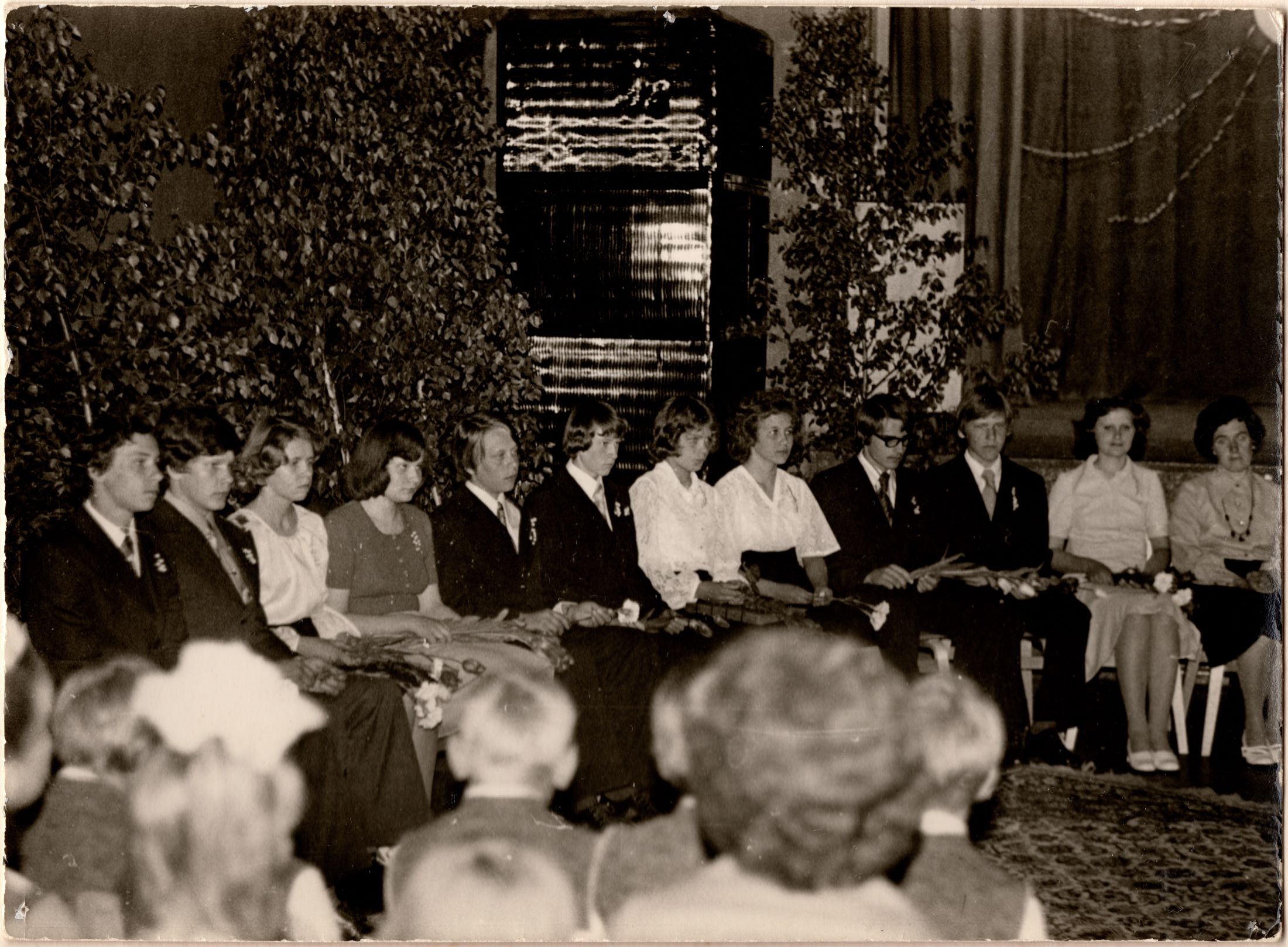 Kodila kooli lõpetajad ja klassijuhataja Ester Kulagina, aasta 1976.