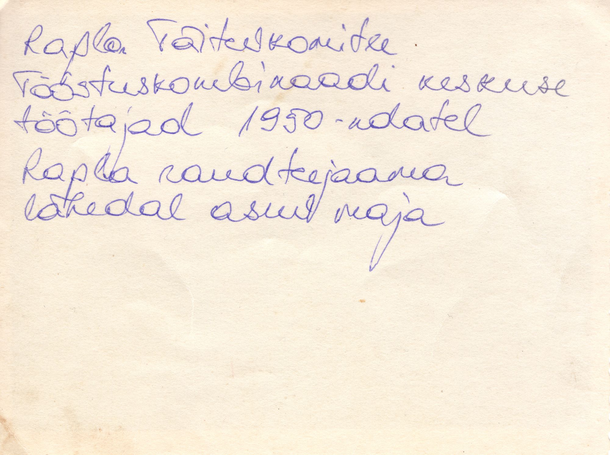 Rapla Rajooni Tööstuskombinaadi loomine 1950ndate alguses. Esimene direktor Rein Põldmaa. Keskus asus Raplas Jaama tänaval (praegu Jaama tn. 1)