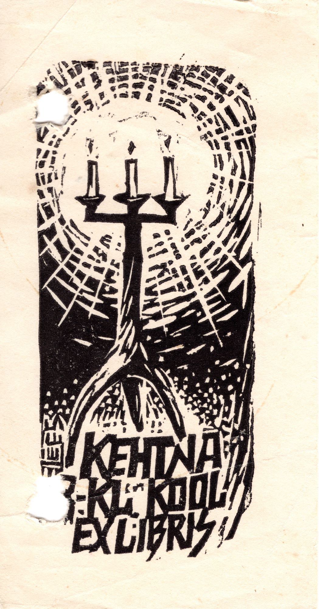 Kehtna 8. klassilise kooli eksliibris.