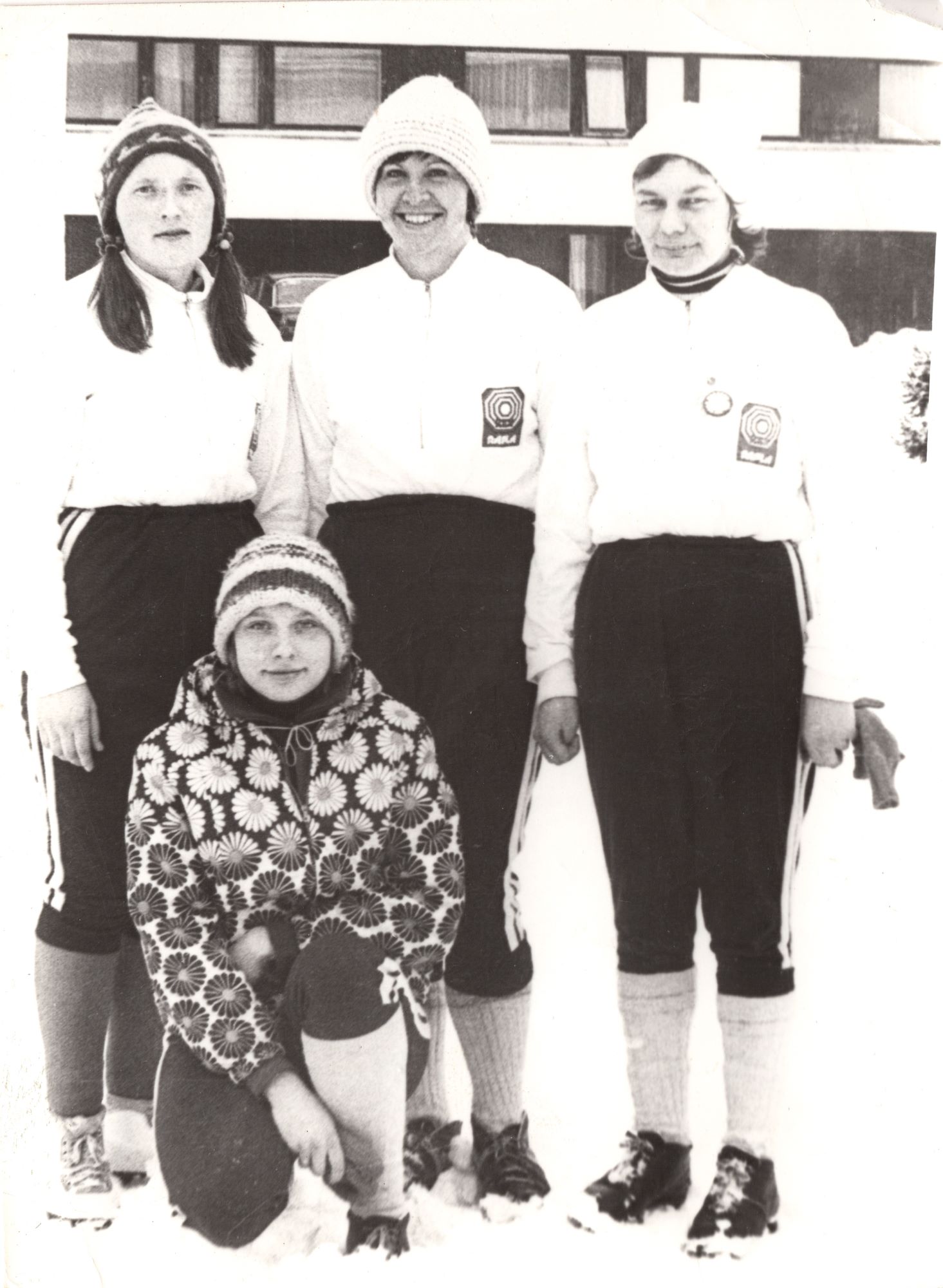Rajooni meistrivõistlused Lokutal 1978. a., teatesõidu naiskond. Vasakult Maie Pitsal, Õie Moor, Linda Lipstuhl. Ees Piret Fuchs.