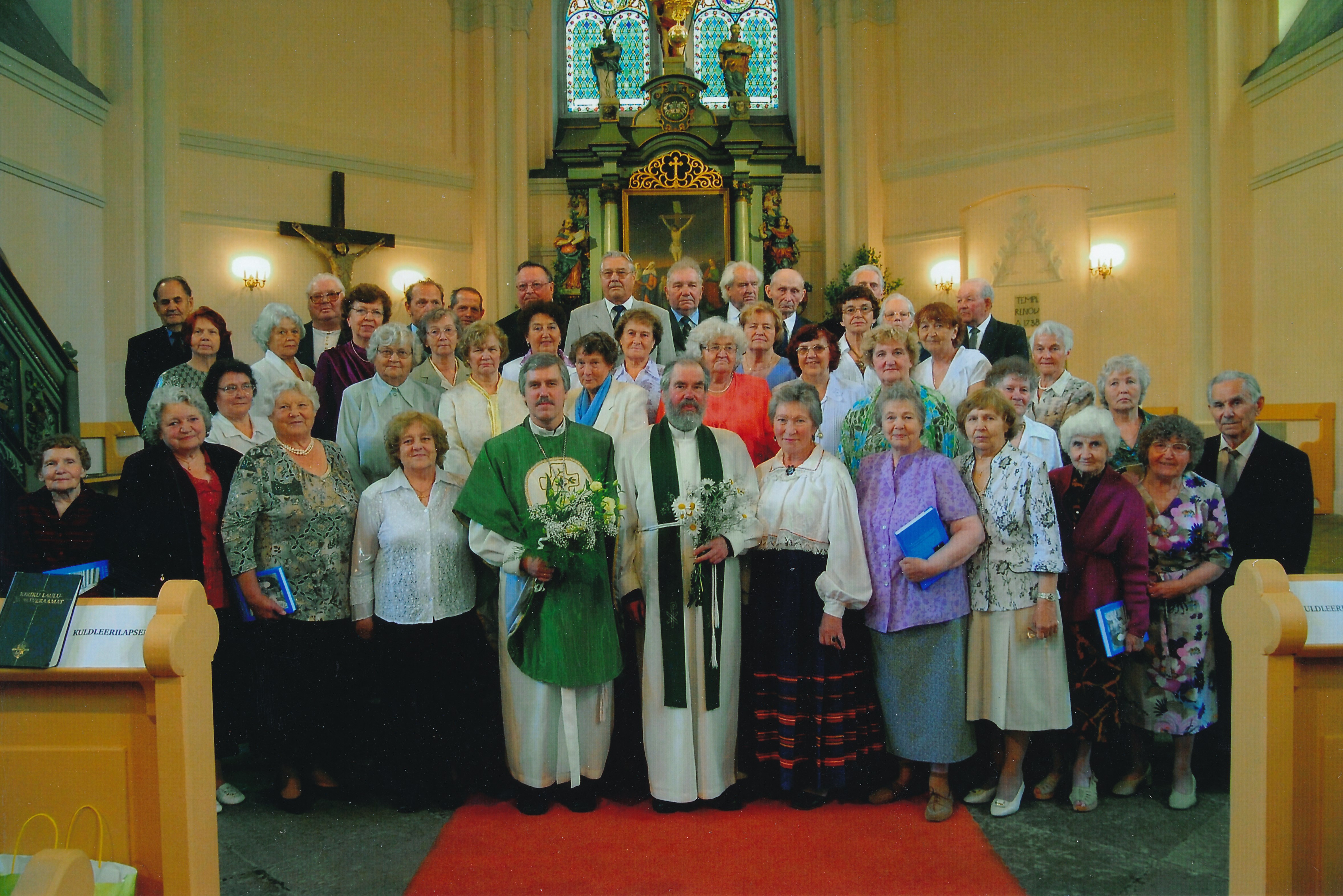 Leerilapsed aastal 1958 ja kuldleeris aastal 2008 Rapla kirikus. Kuldleeri pildil kaskel vasakult koguduse õpetaja Mihkel Kukk, õpetaja Kalju Kukk, Luule Lainväe