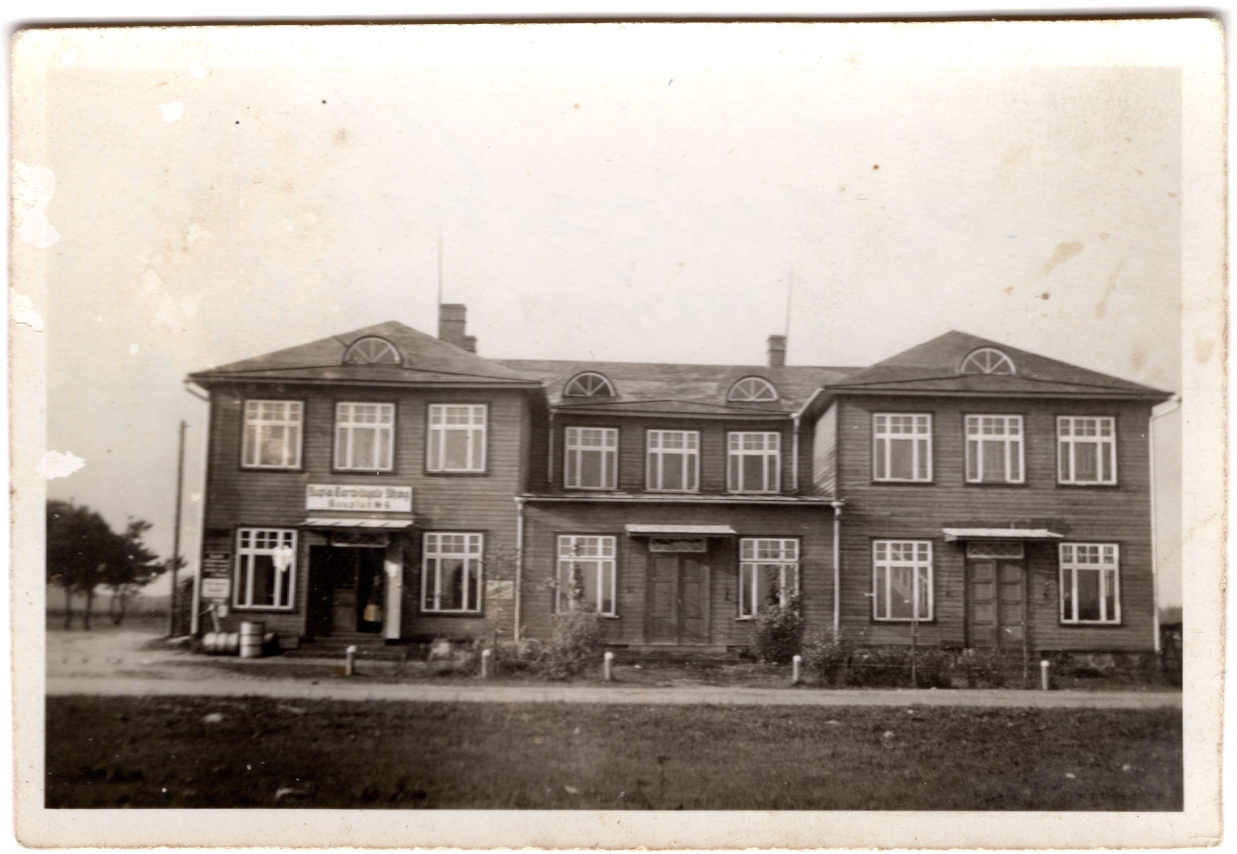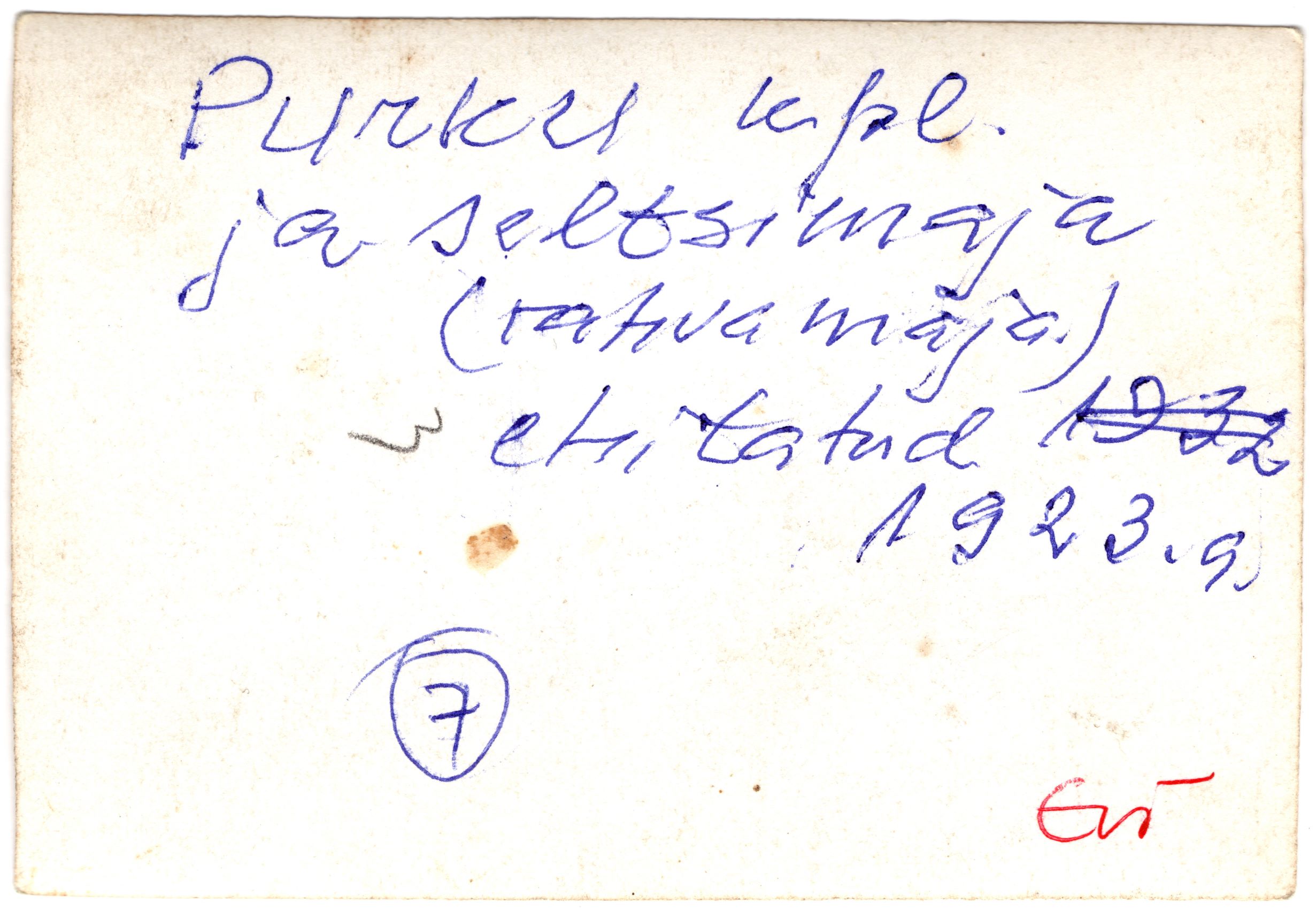 Info foto tagaküljel: Purku kauplus ja seltsimaja (rahvamaja). Ehitatud 1923. aastal.