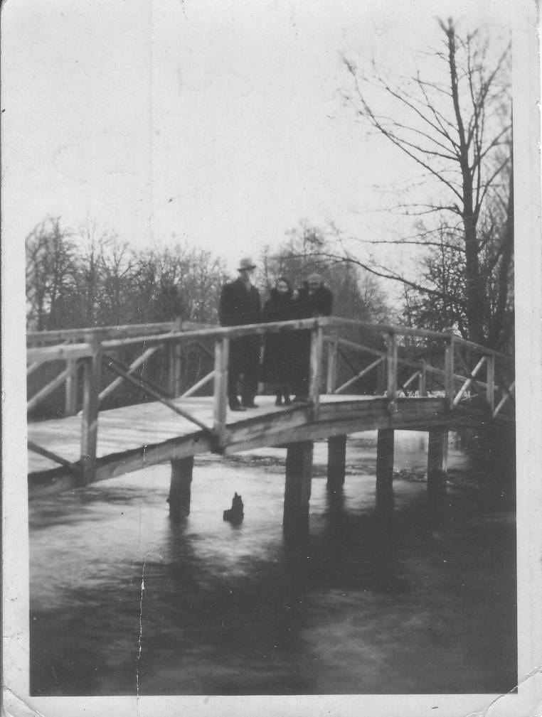 Fotol Kuusiku pargi puitsild. Pildistusaeg arvatavasti 1930ndad.