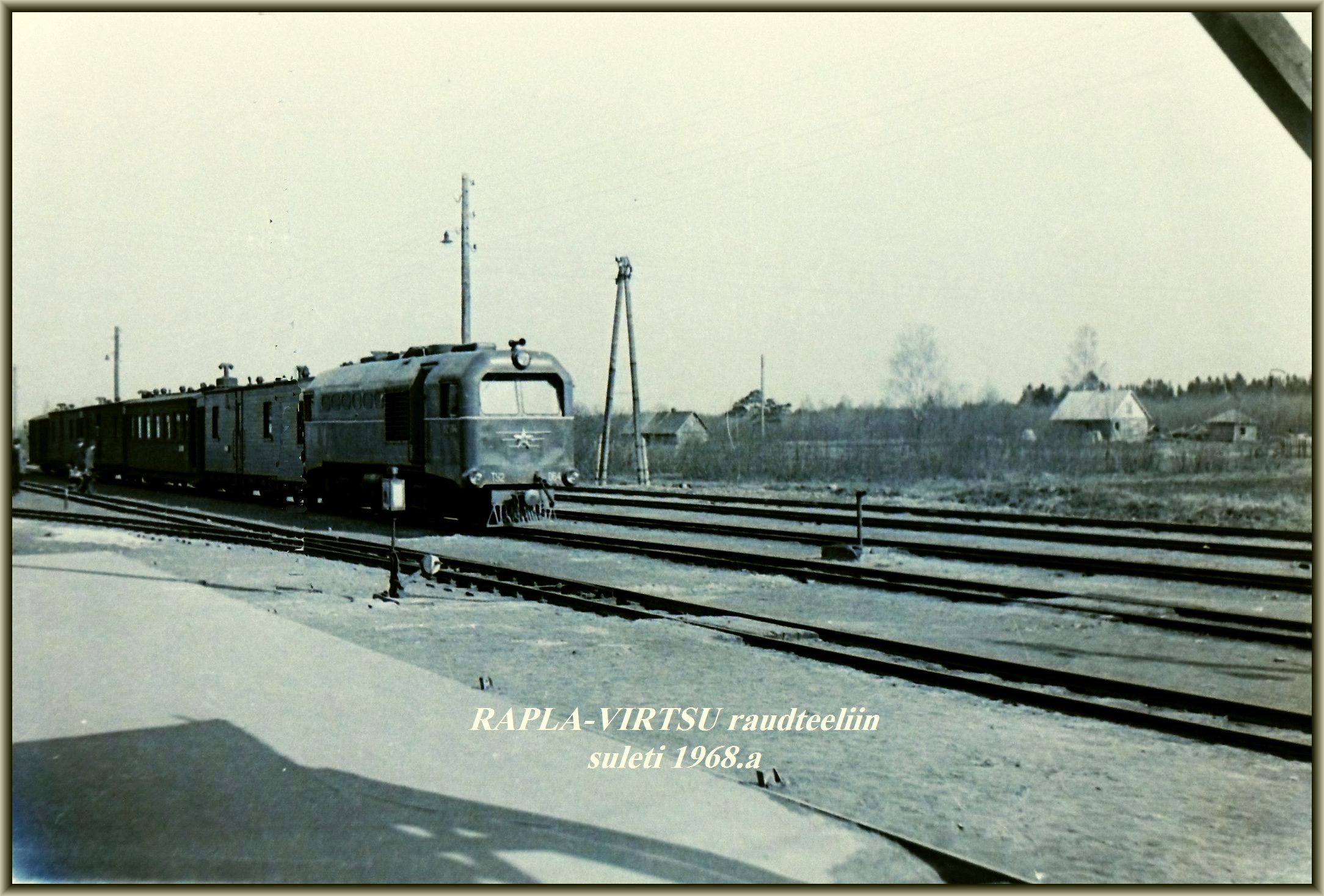 Tallinn-Pärnu reisirong uute Poola vagunitega Rapla jaamas -1957 kevad. Tallinn-Virtsu reisirong Raplas 1957, liin suleti 1968.