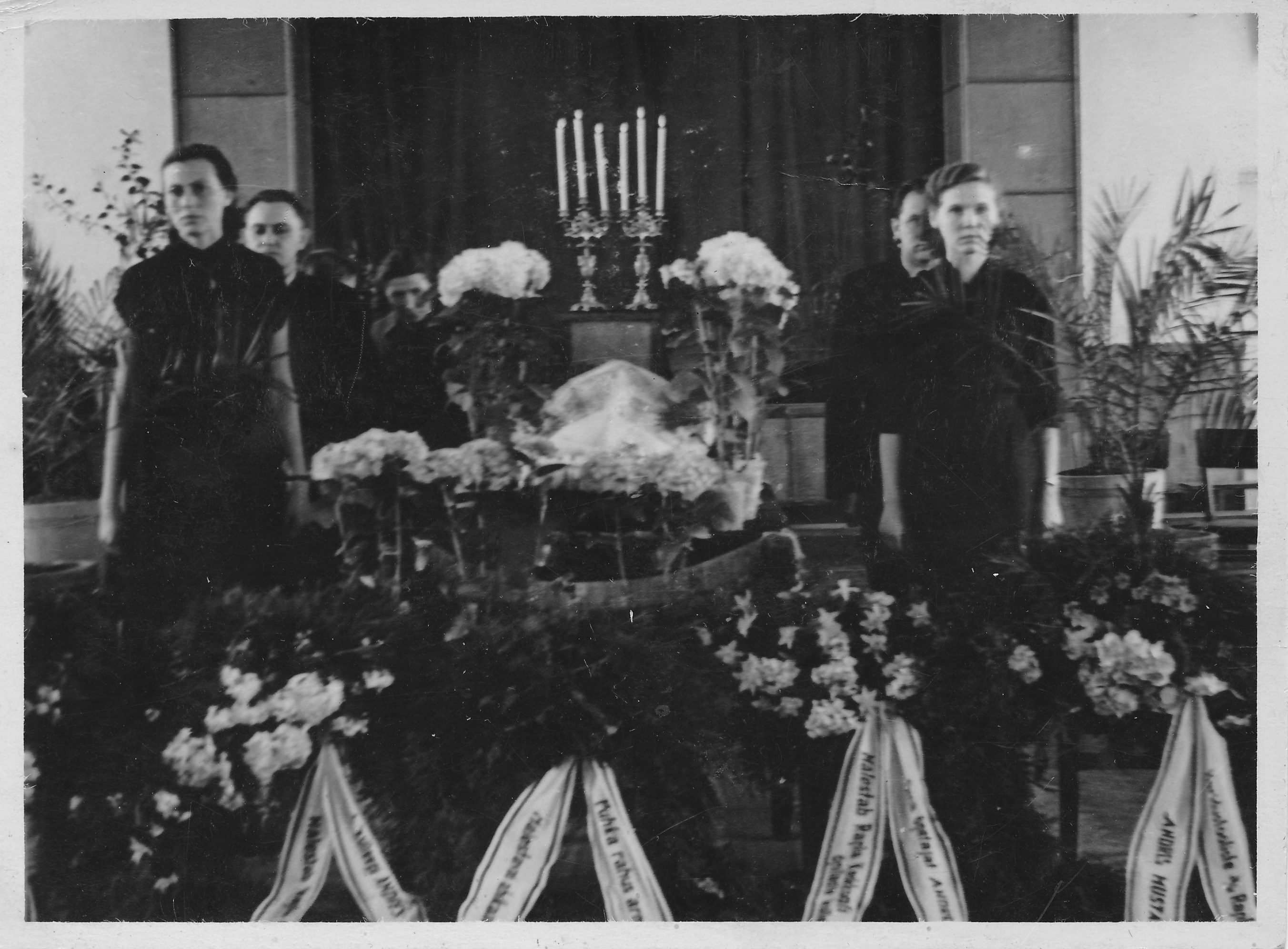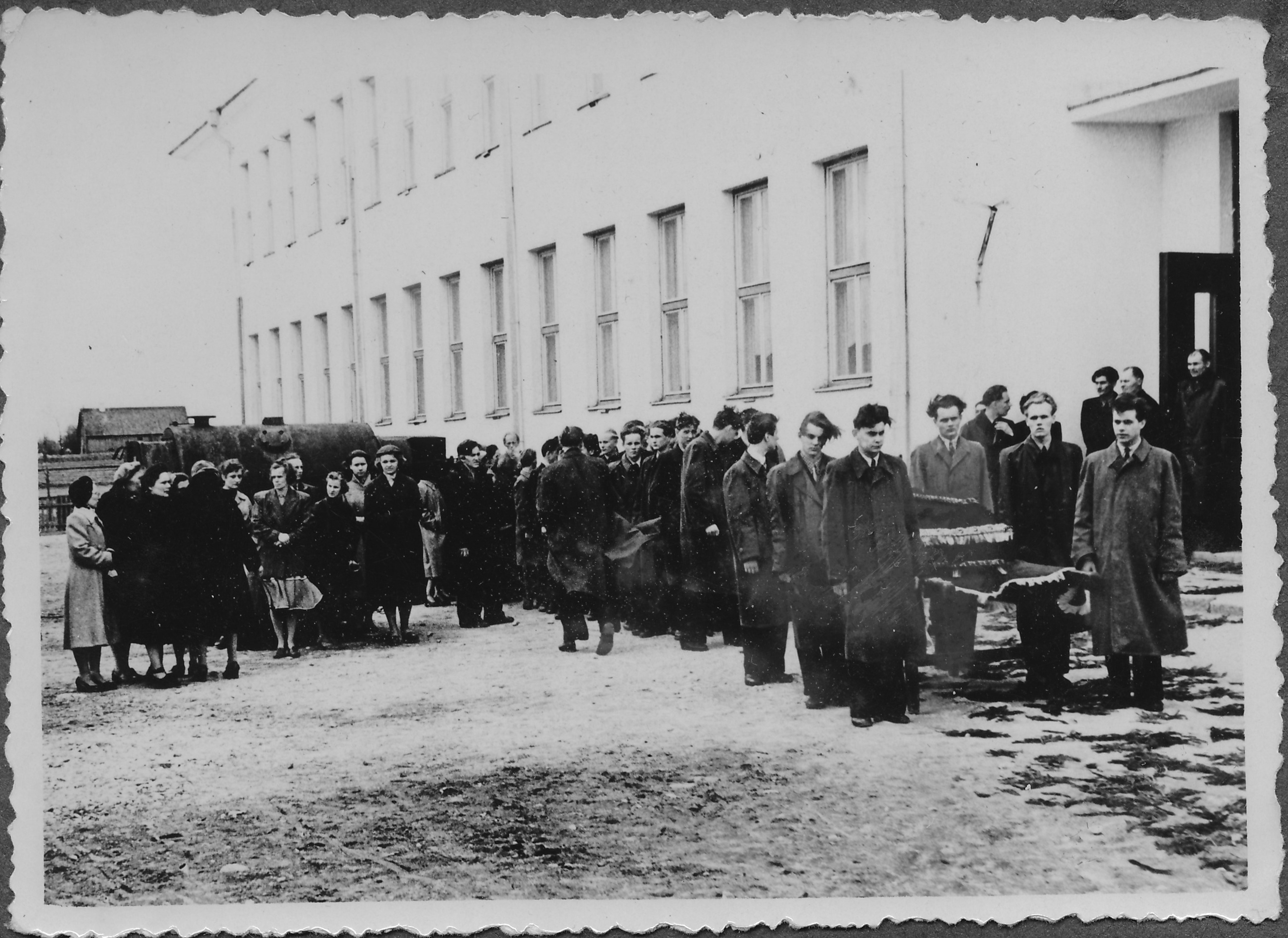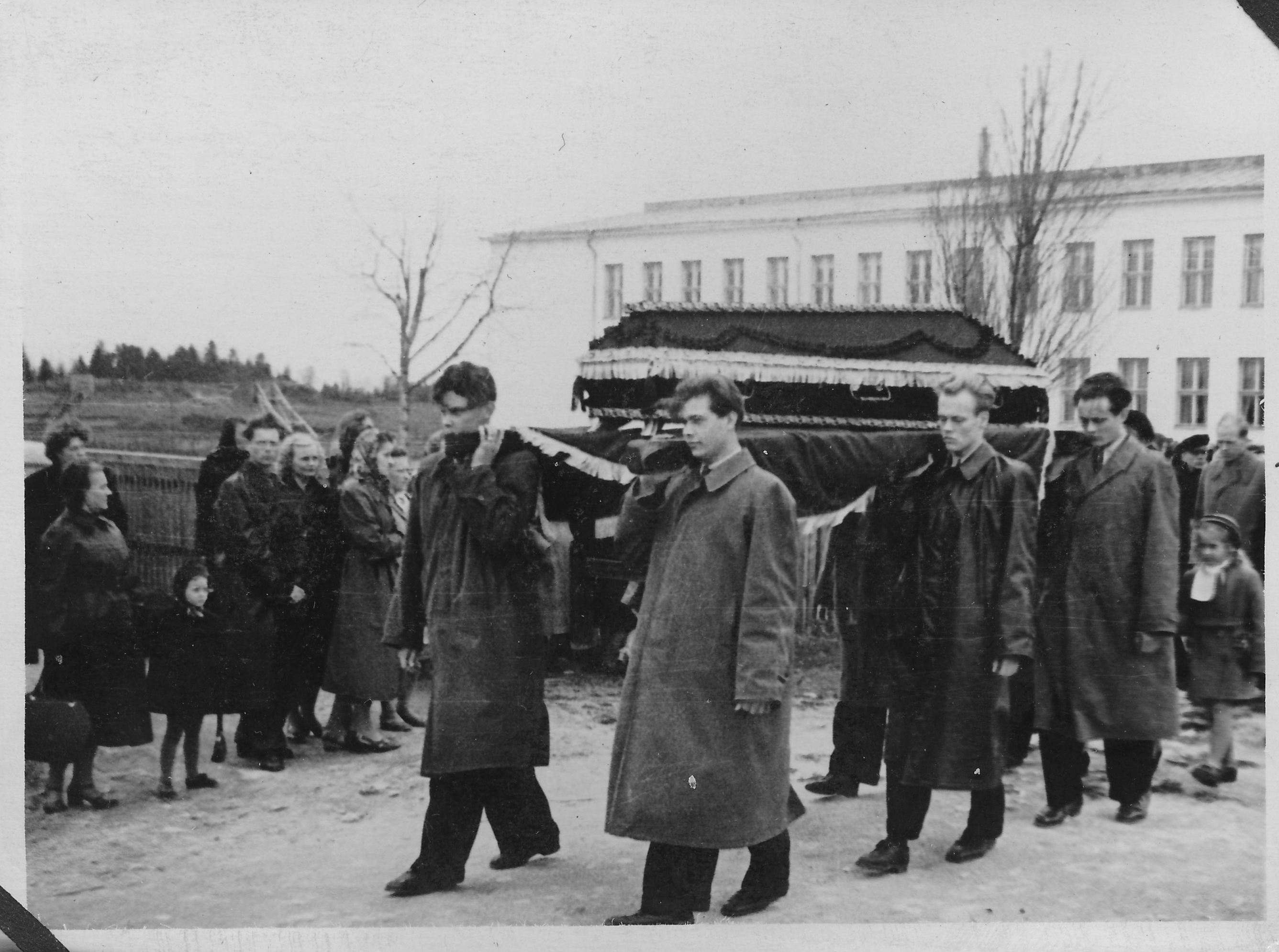 Fotod Rapla Keskkooli matemaatikaõpetaja Andres Musta matustest 1957. a. Ärasaatmine toimus koolimajas.