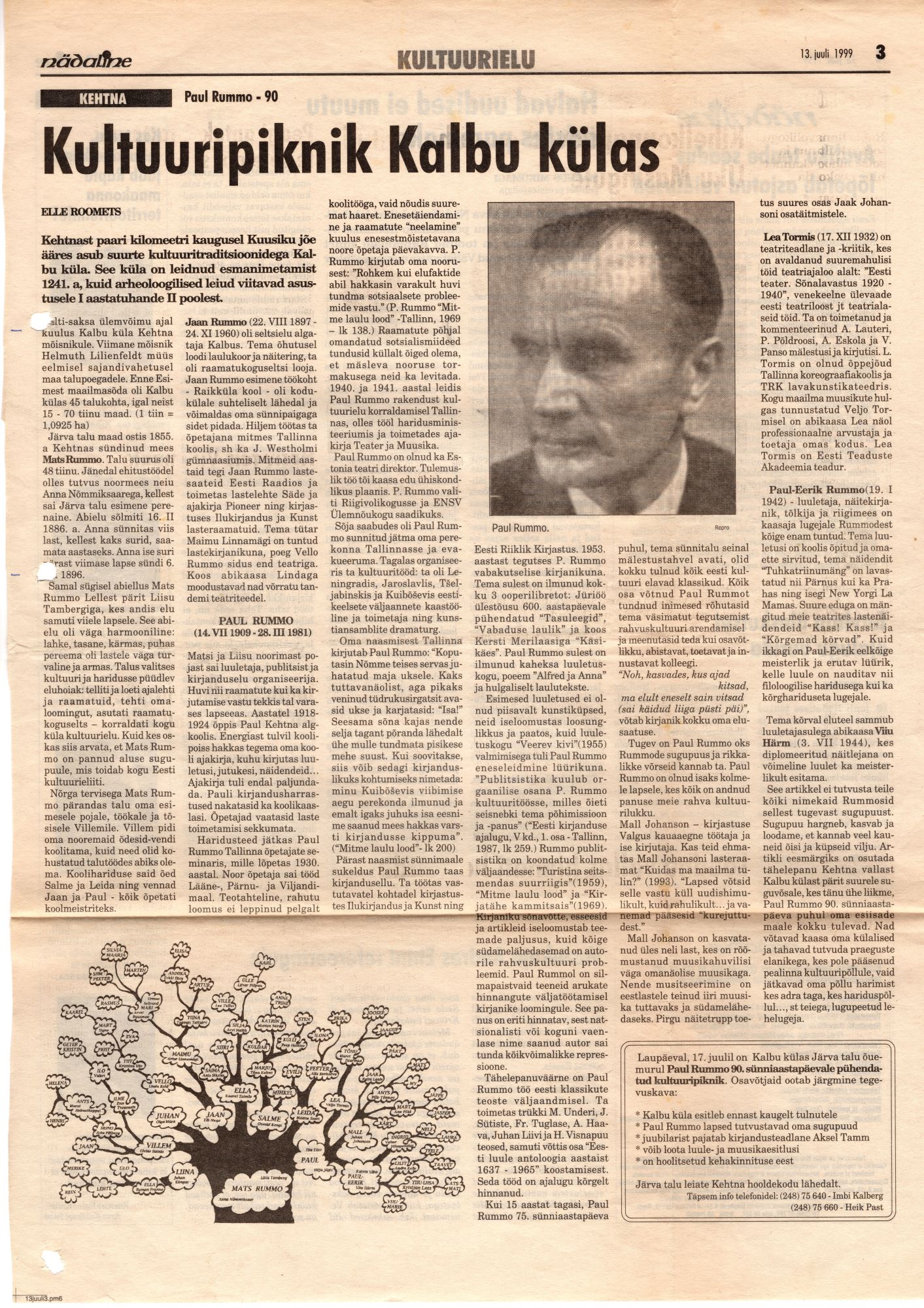 Elle Roometsa artikkel Nädalises Rummode suguvõsast - pühendatud Paul Rummo 90. sünniaastapäevale.