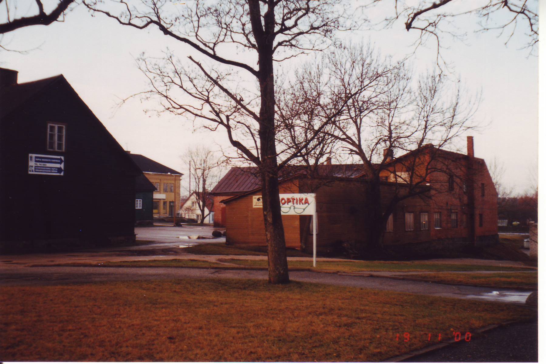 Fotod Rapla kooperatiivi kaupluste kompleksist aastal 2000 enne lammutamist. 2001. aastast on foto platsist, kus hooned on juba lammutatud ja ees ootab uue Konsumi ehitus.