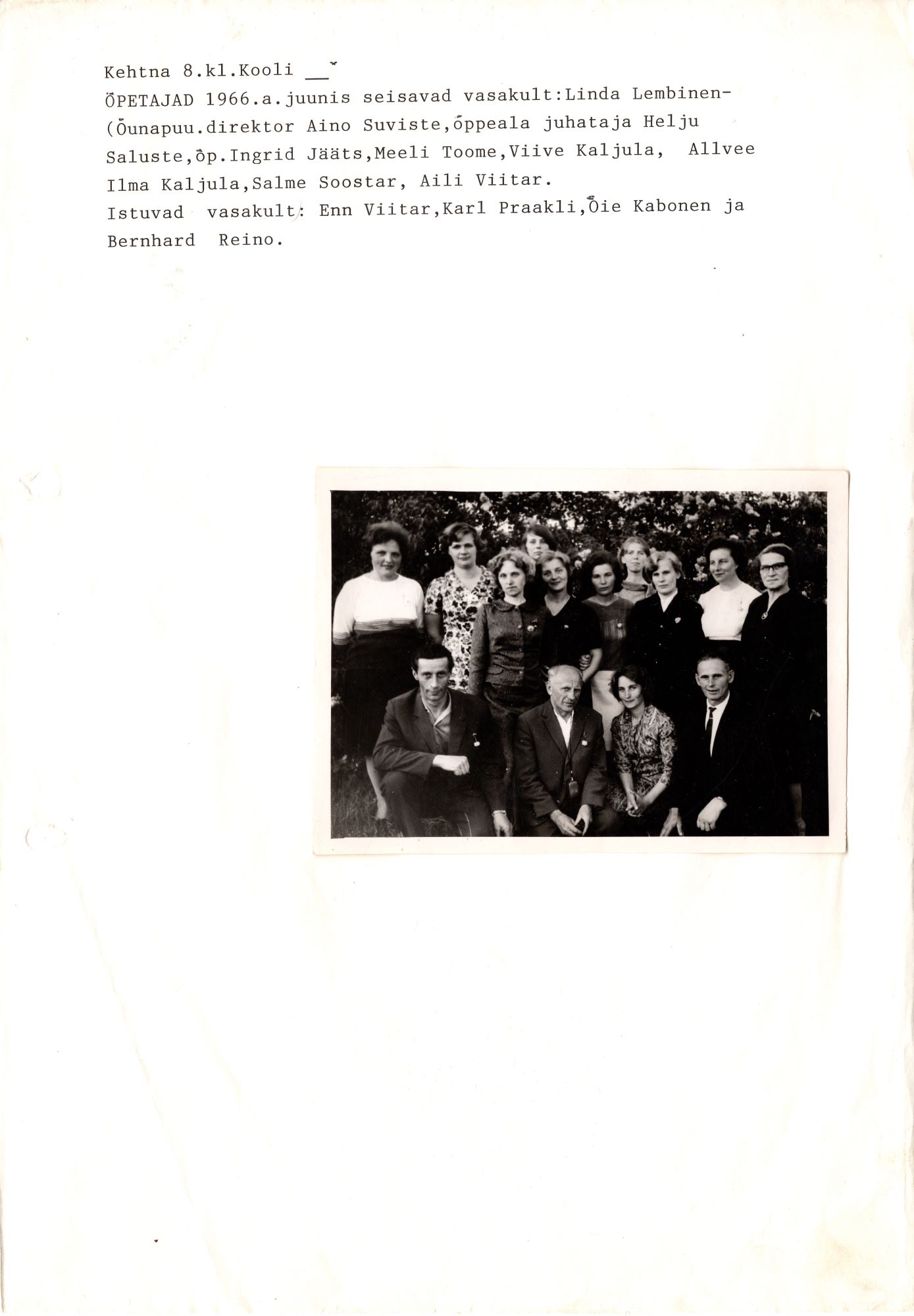 Kehtna 8.klassilise kooli õpetajad 1966. a. juunis. Direktor Aino Suviste.