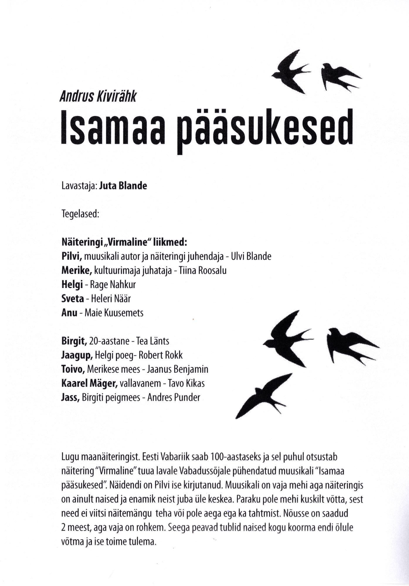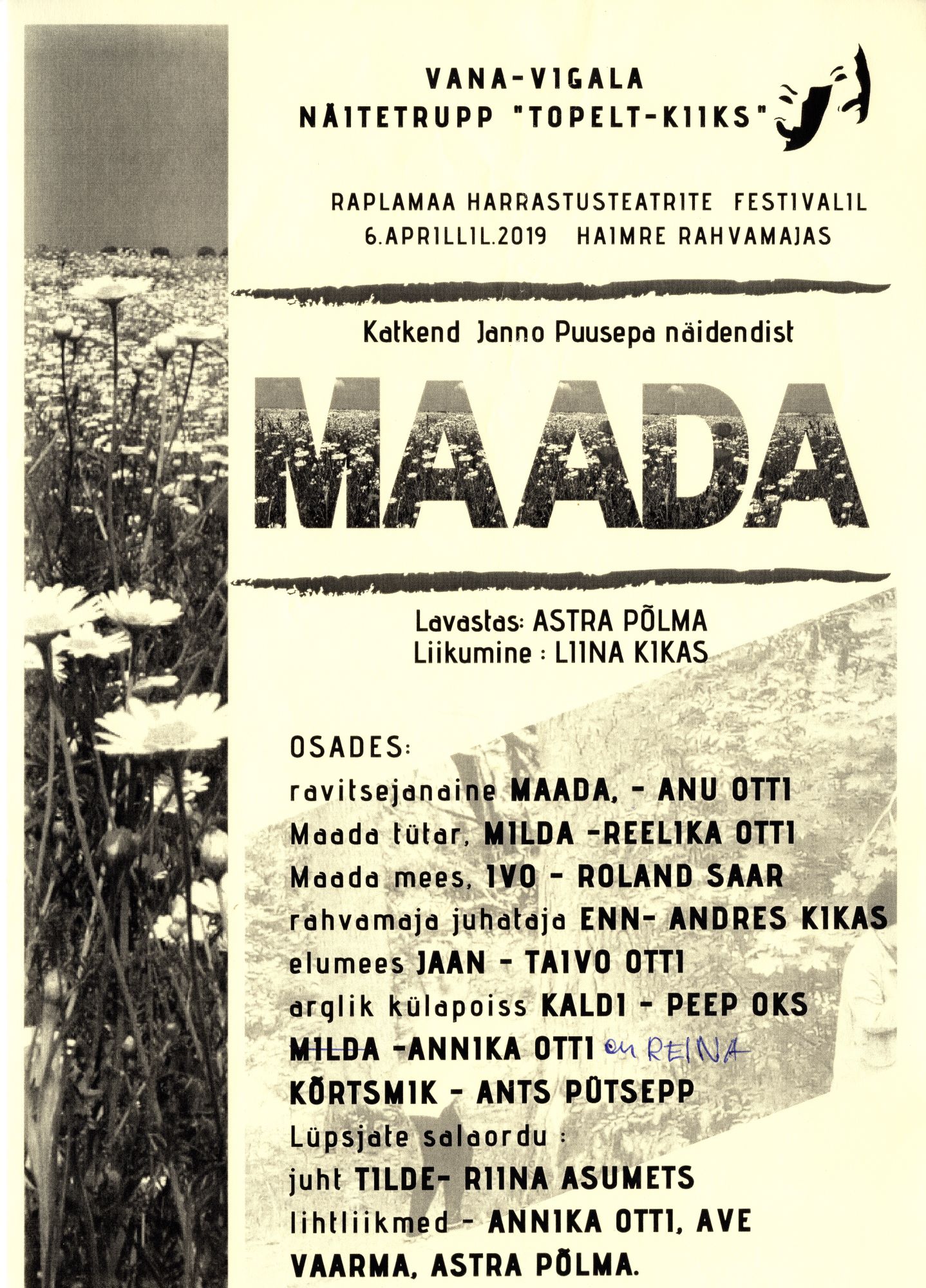 Raplamaa Harrastusteatrite Festival Haimres 6. aprill 2019.a. Teema "Teater laulab"