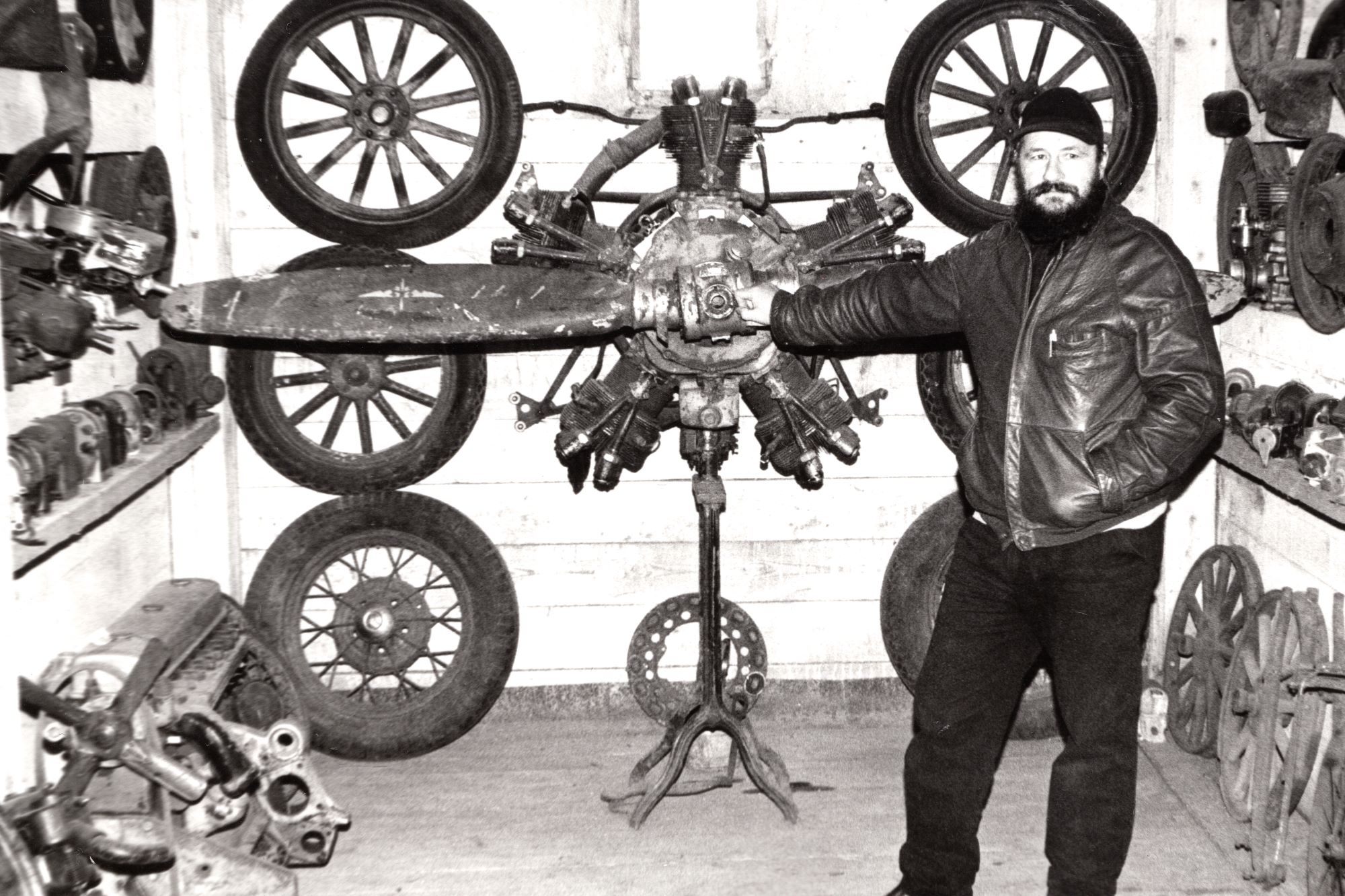 Varbola Vanavaraaida peremees Hindrek Kukk oma tehnika keskel. Foto pärit 1990ndatest. Foto autor Raivo Raudsepp.