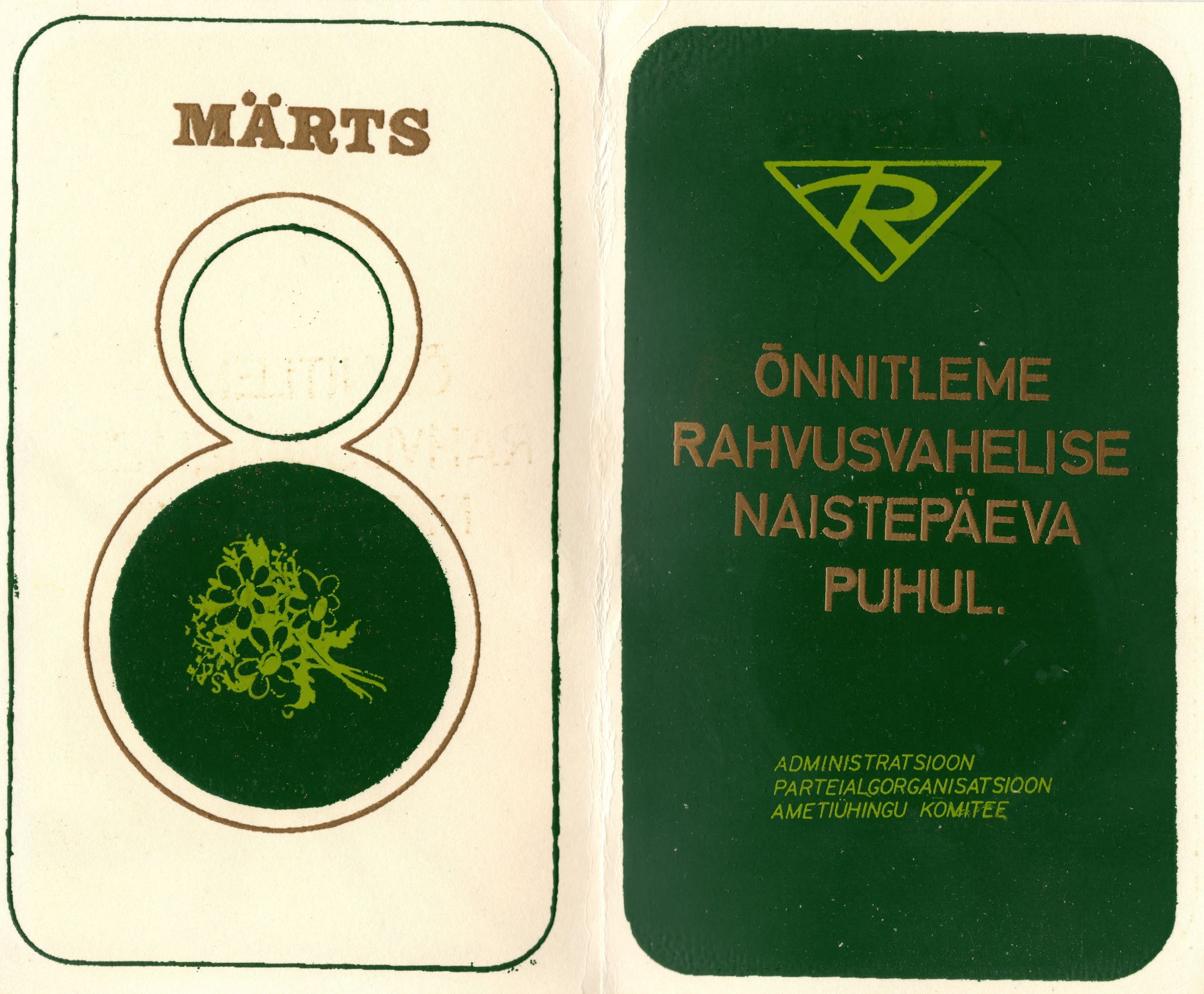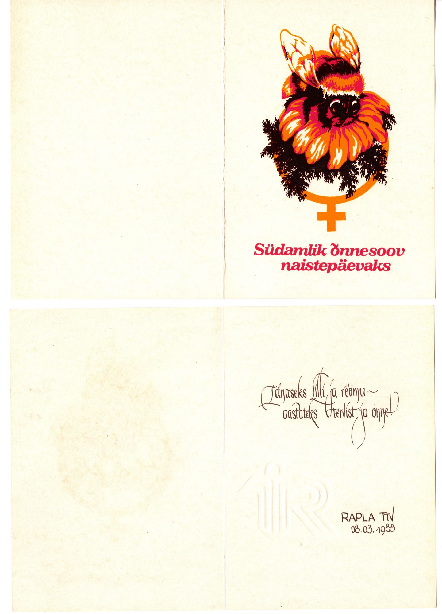 Teenindukombinaat Rapla ja Rapla TTV naistepäeva õnnnitluskaardid ettevõtte naisperele. 1980ndad aastad.