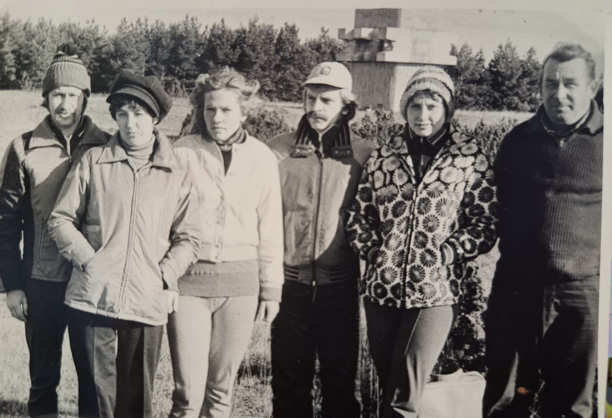 Rapla KEK-i jooksjad Saaremaal, Tehumardi jooksul 1979. Vasakult Ülo Maasing, ?, Maret Erm, Mati Rohtla, Piret Fuchs, ?