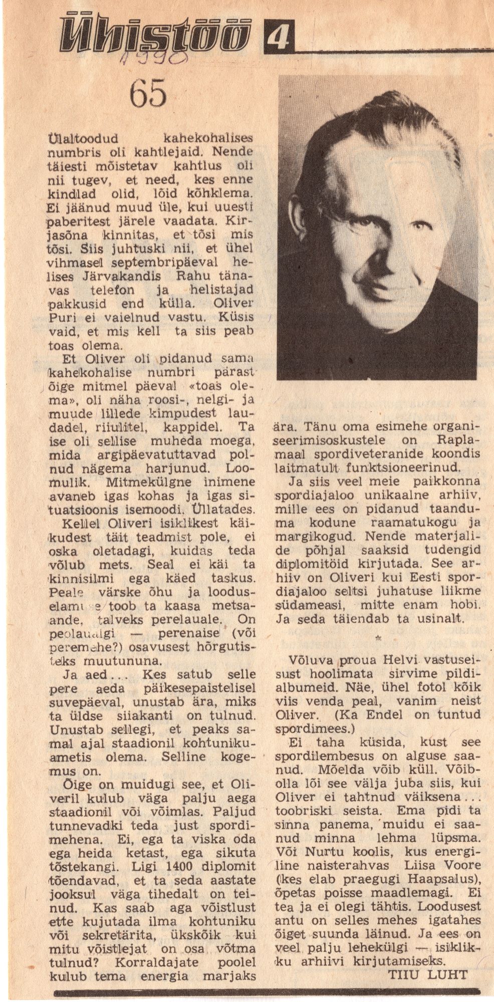 Oliver Puri 65. Artikkel 1990 aasta Ühistööst.