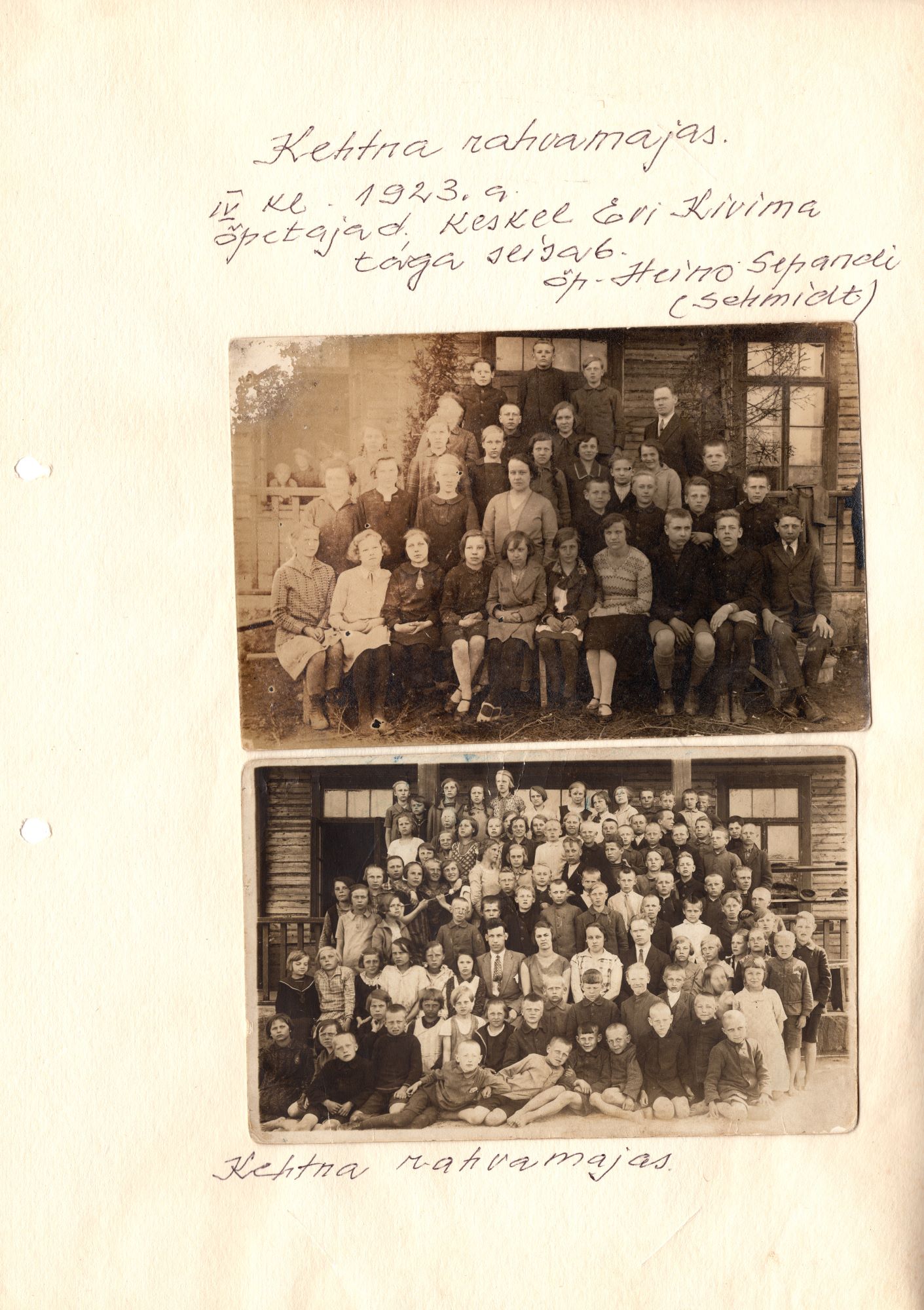 Kehtna algkooli õpilased ja õpetajad 1923. aastal Kehtna Rahvamajas.