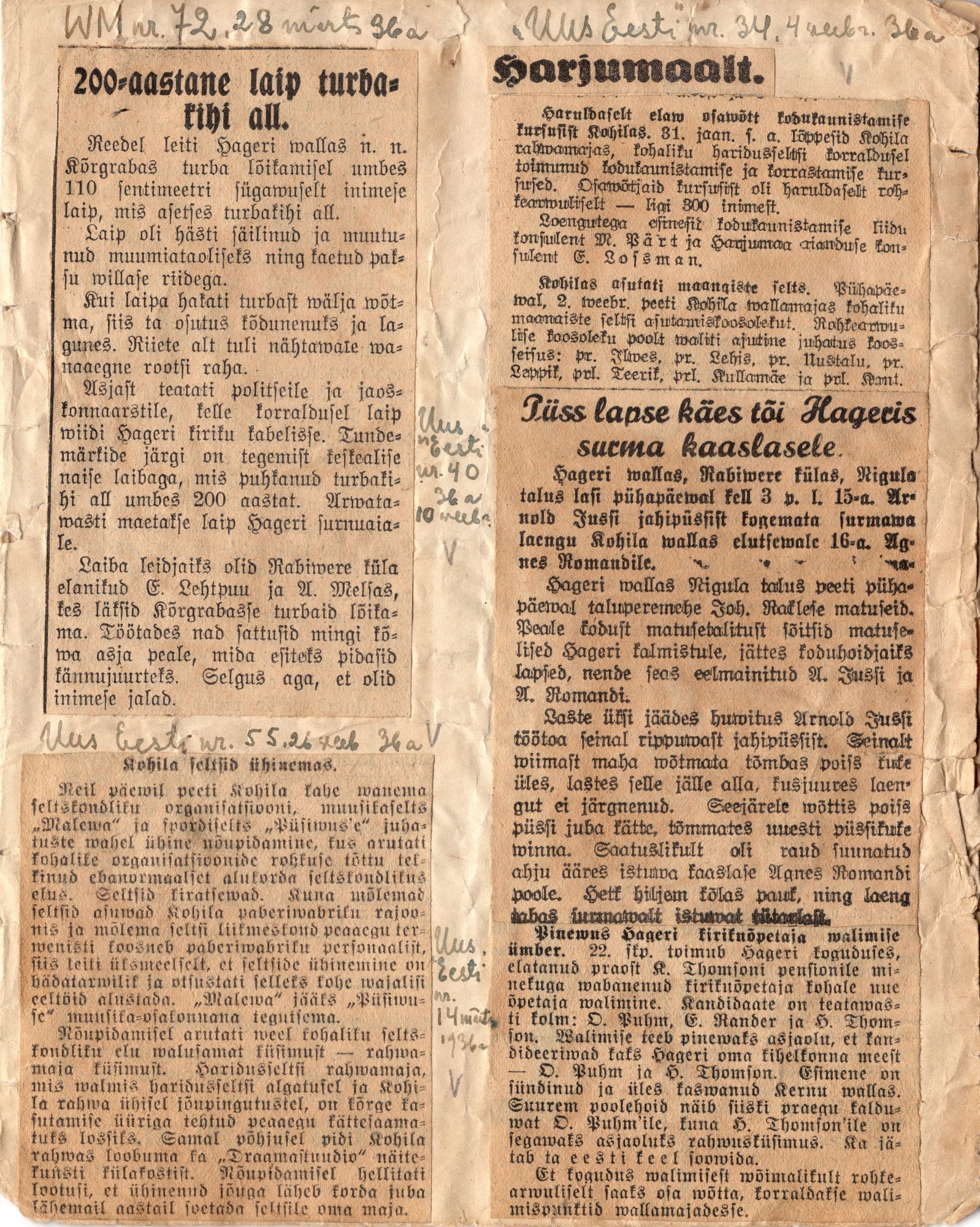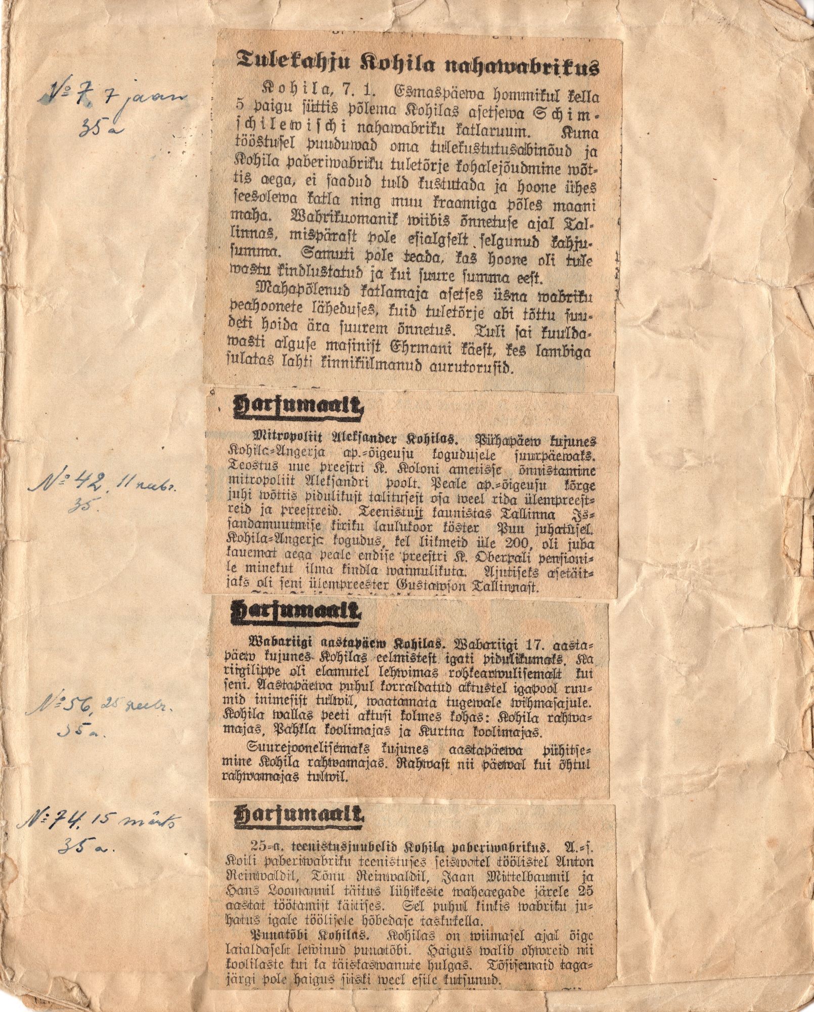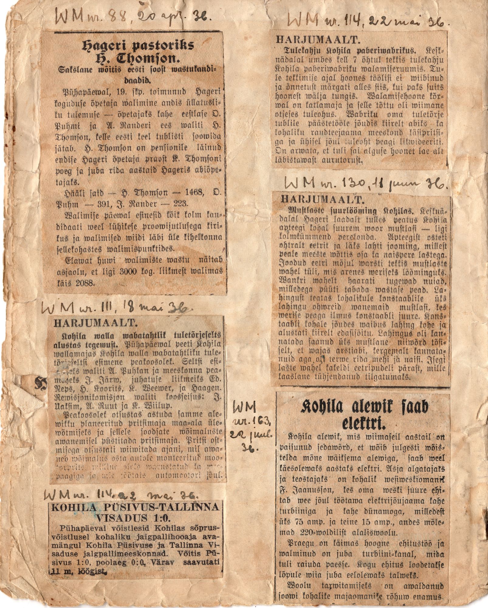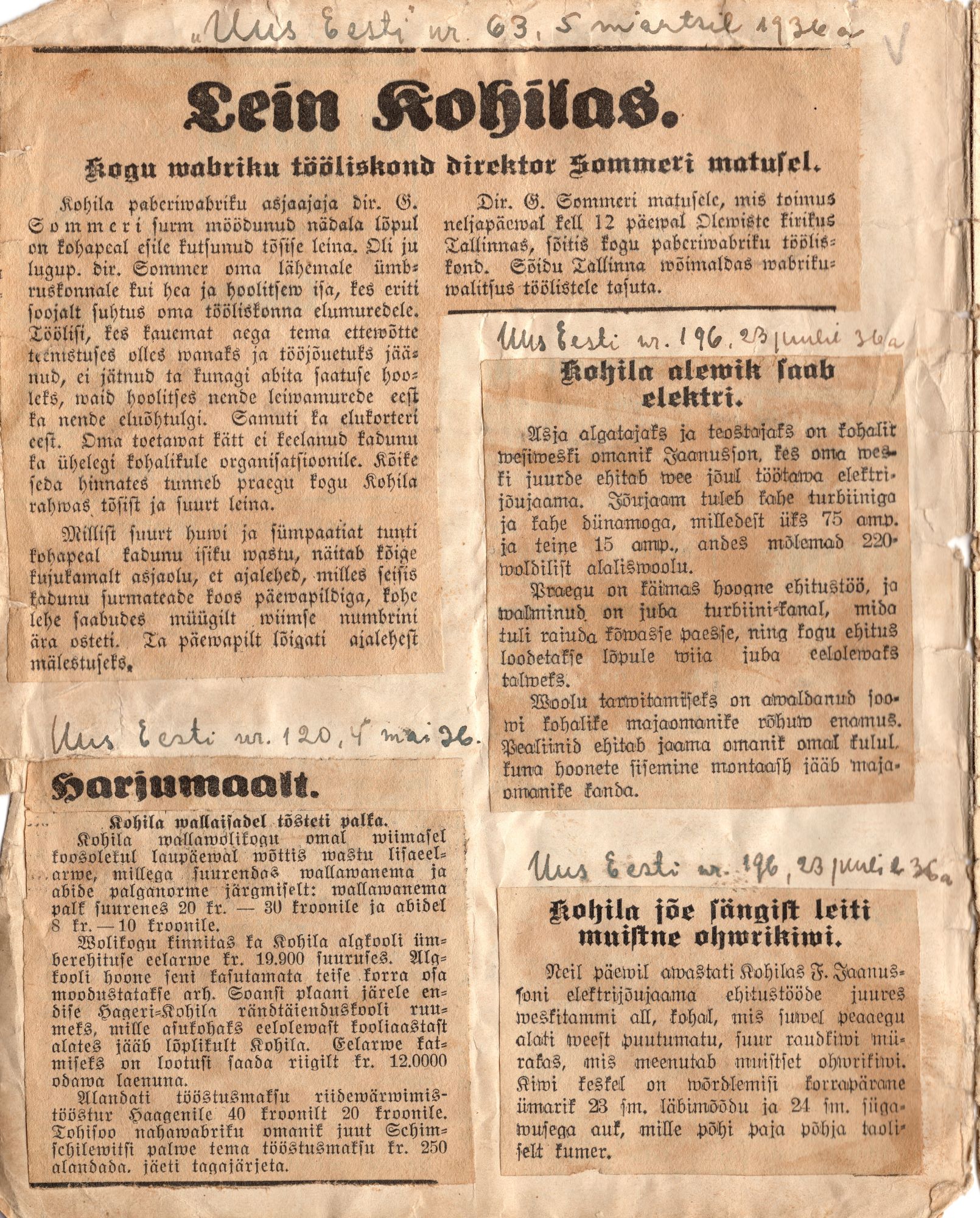 Harjumaa, Kohila, artiklid, kirjasaatjad