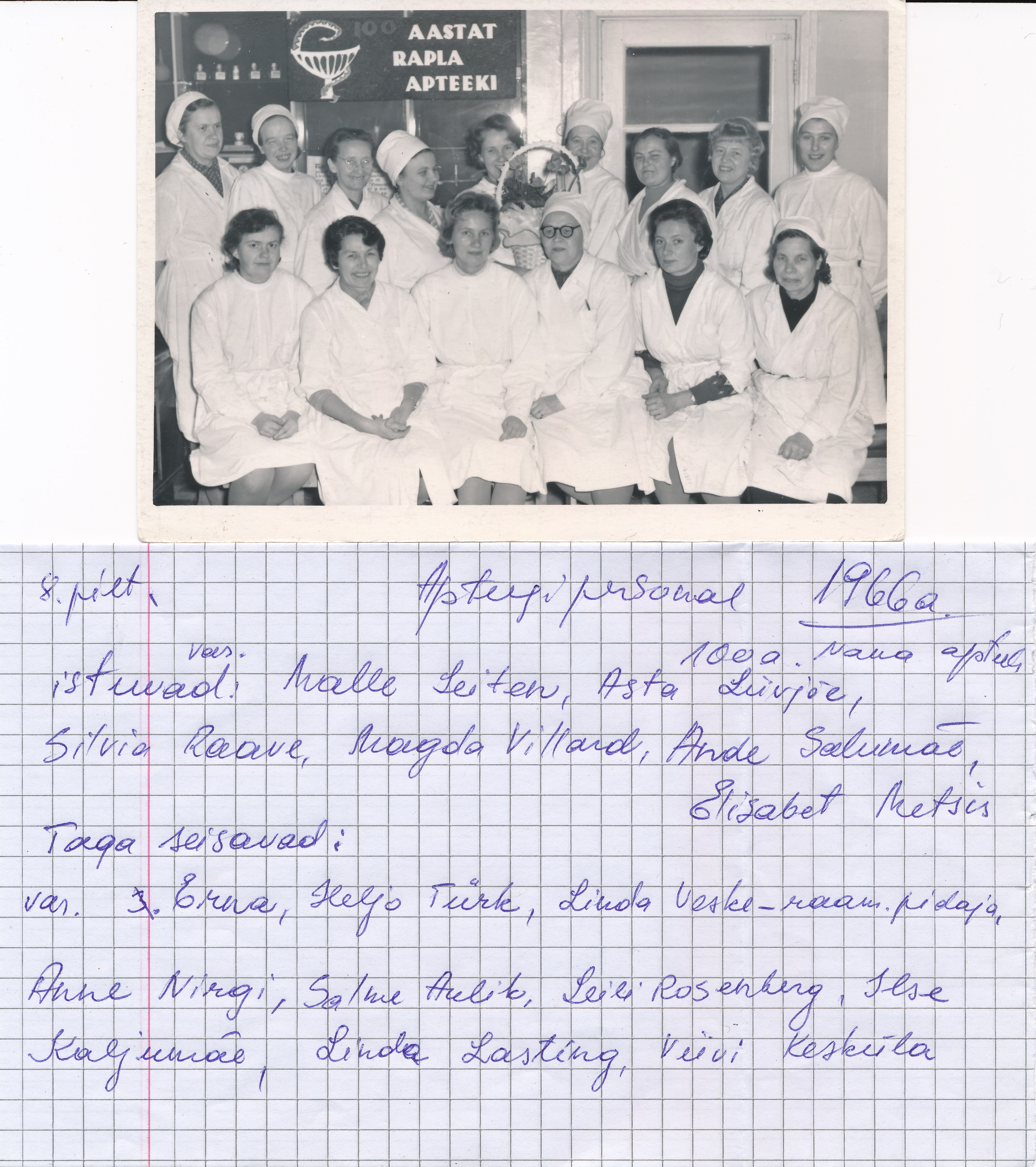 Rapla apteegi kollektiiv apteegi 100. juubeliaaastal. Teine foto on nimedega.