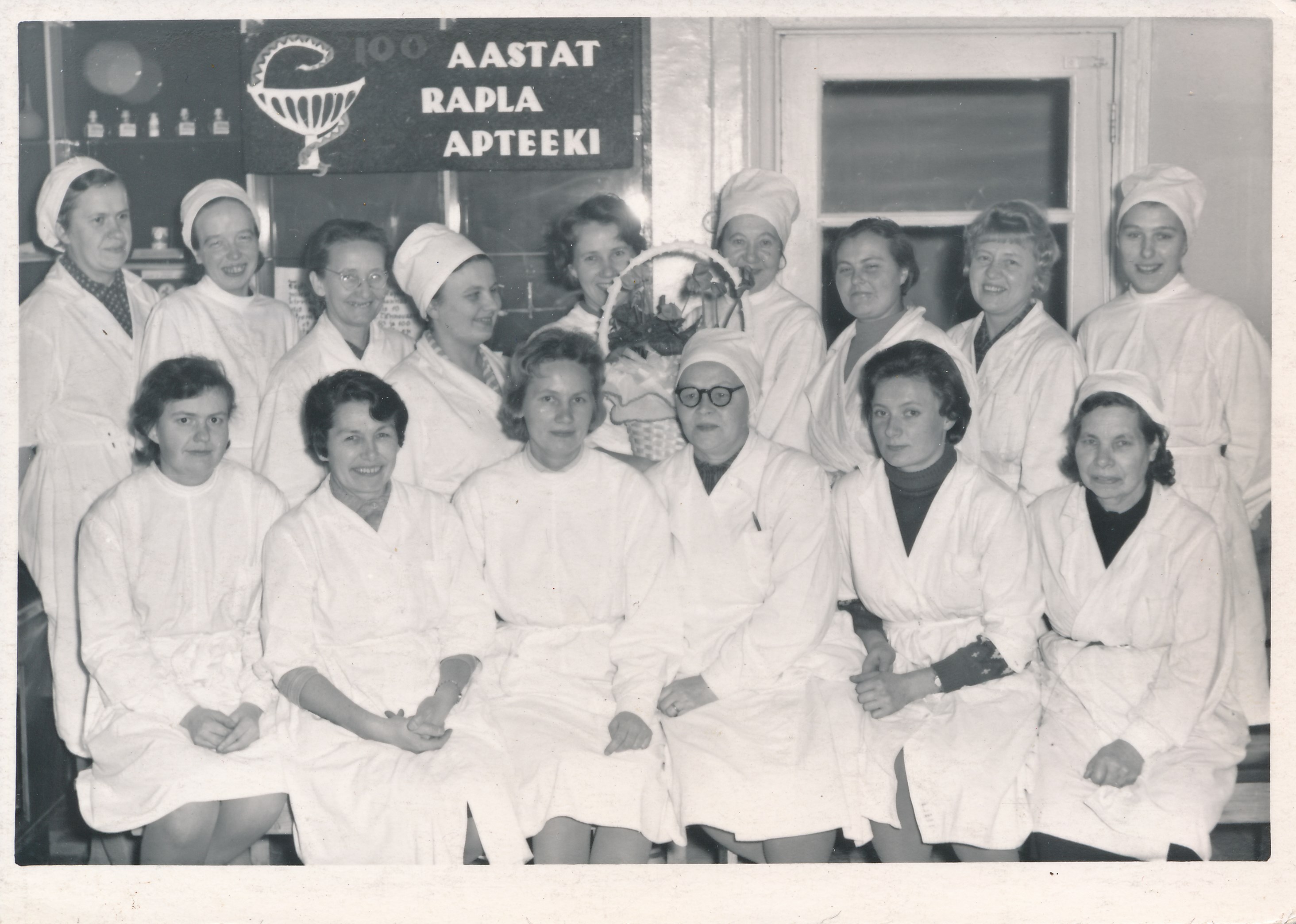 Rapla apteegi töötajad asutuse juubeliaastal 1966