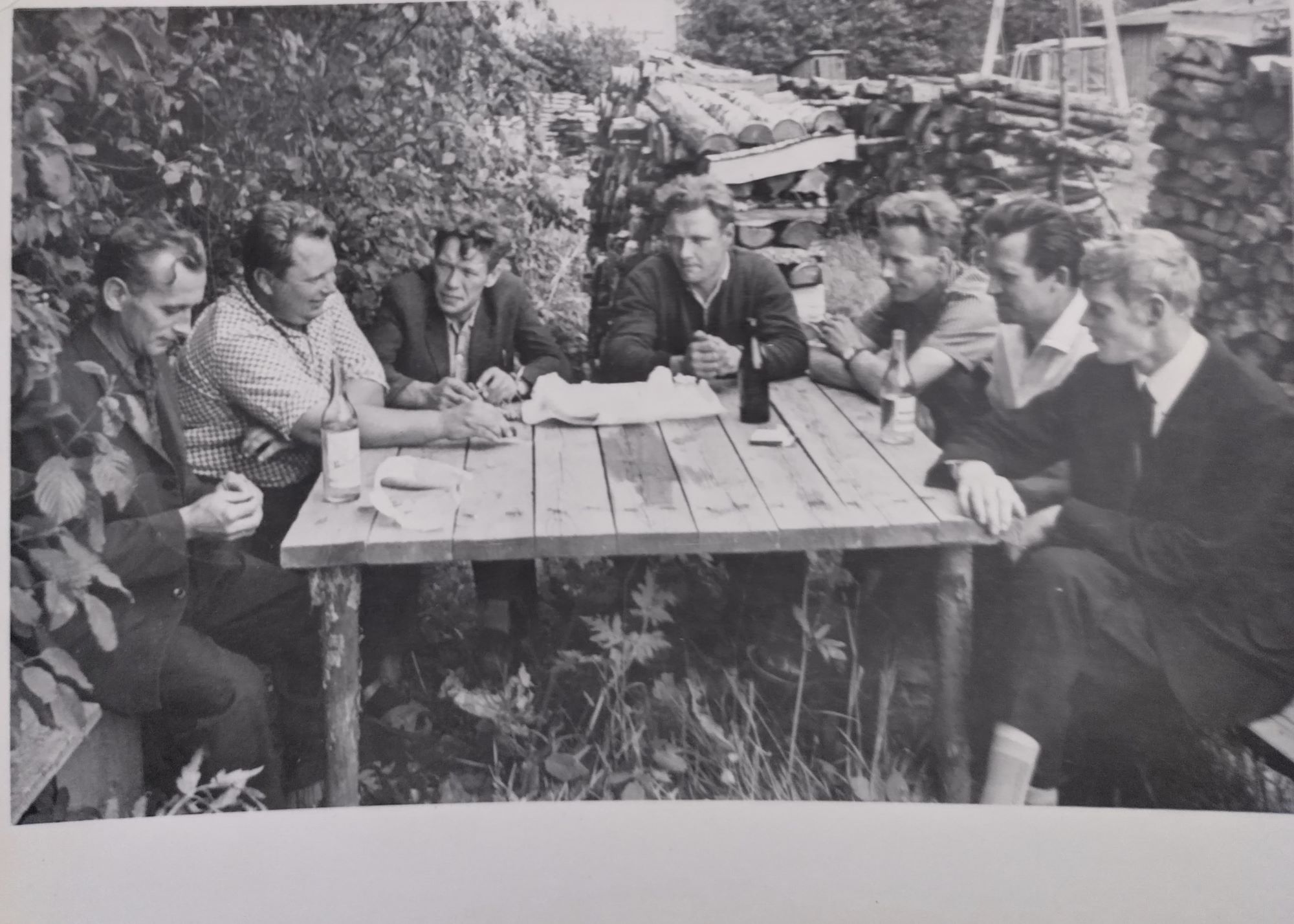 Nõupidamine Rapla KEKi saekaatris. Pildistatud arvatavasti 1970ndatel.