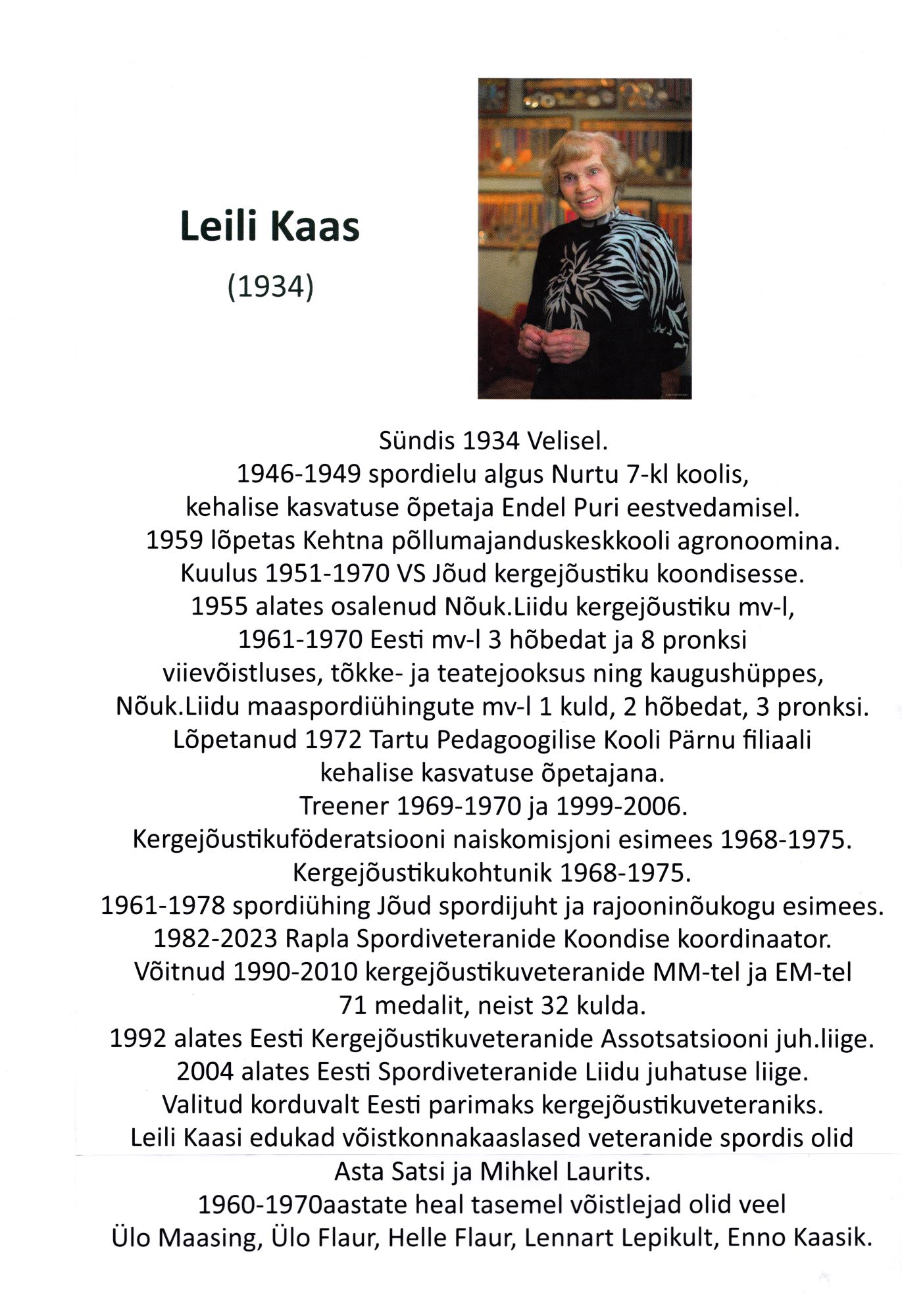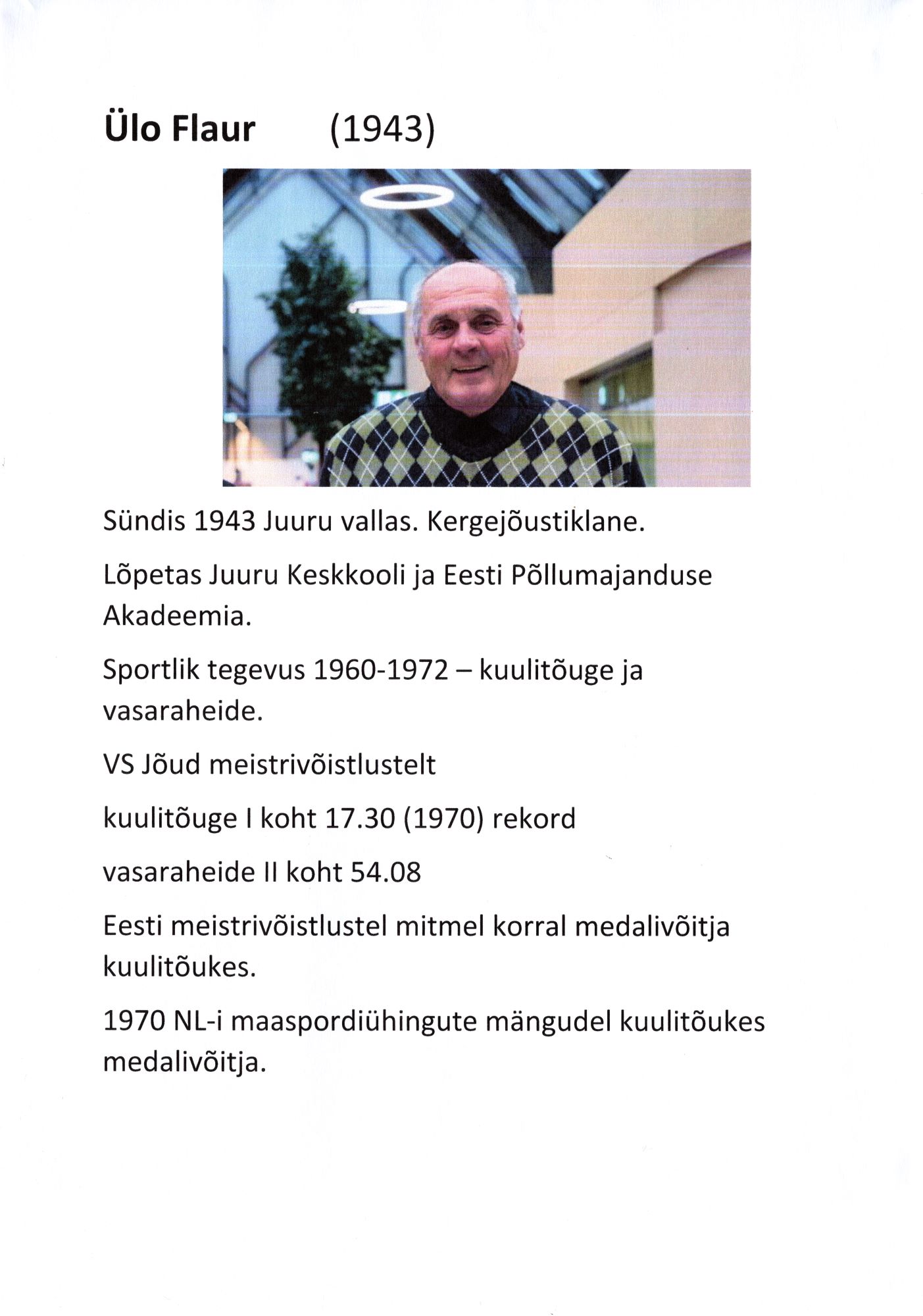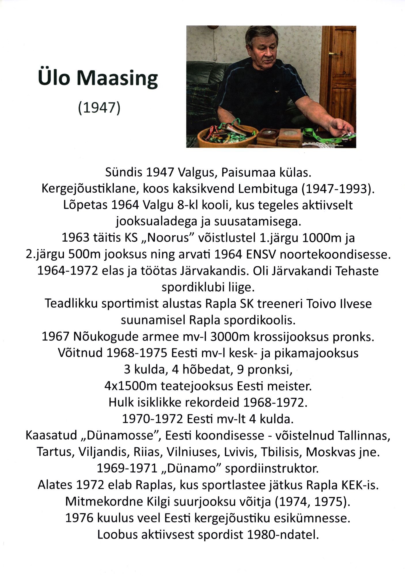 Lühiülevaade mõnede Raplamaa spordiveteranide saavutustest, ülevaated tehtud Raplamaa spordiveteranide näituse jaoks aastal 2024.