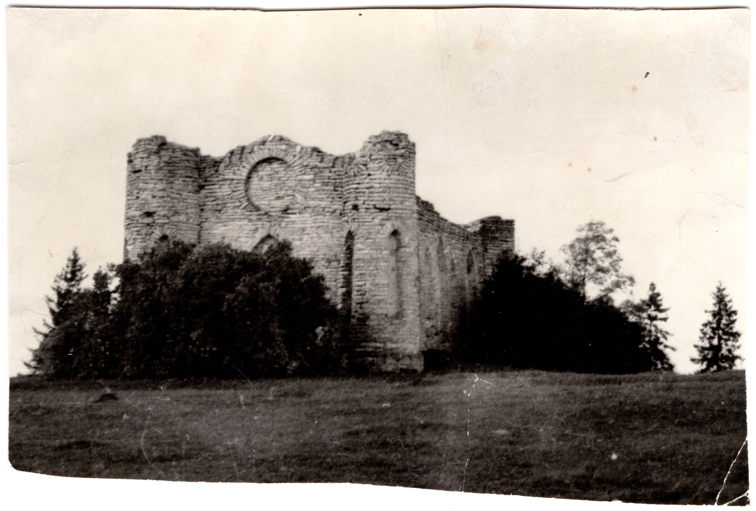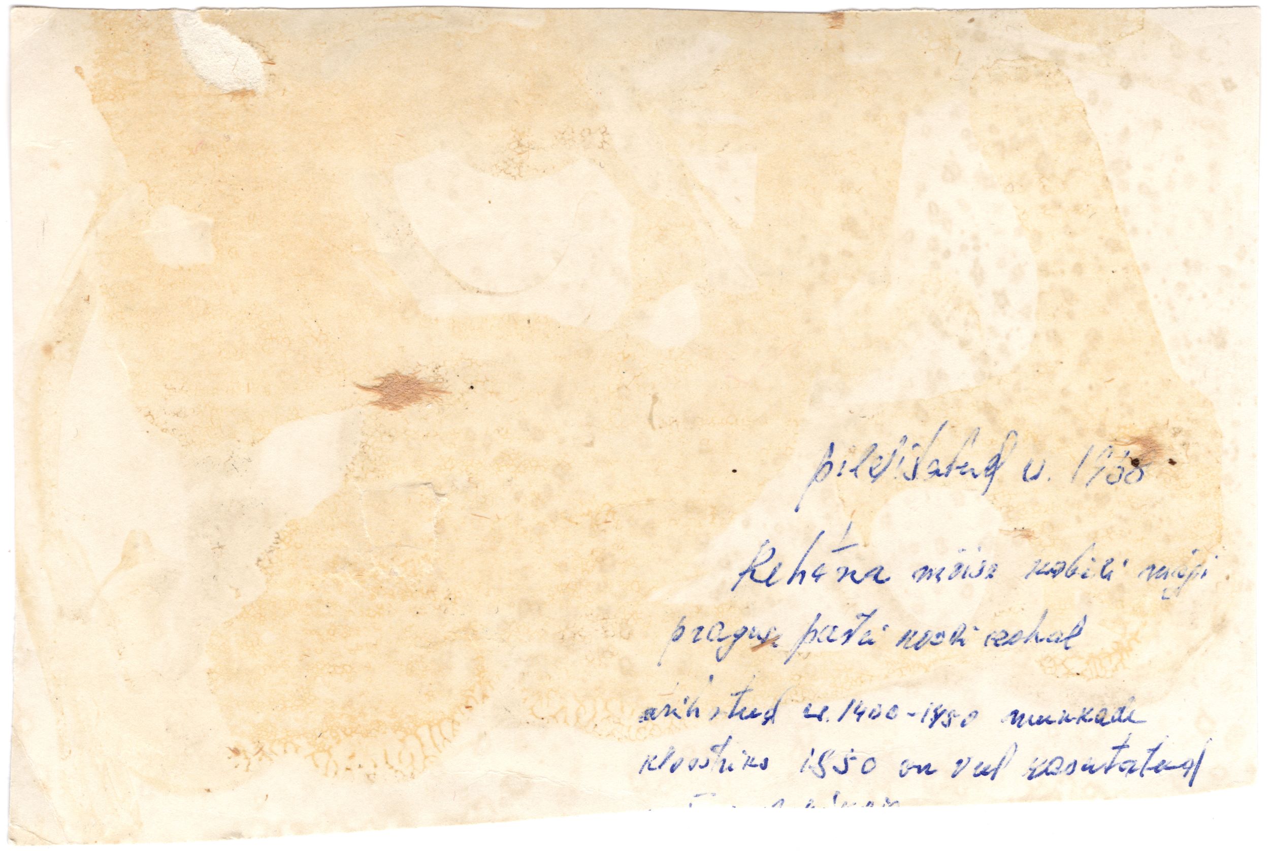 Kehtna mõisa kabeli varemed Kabelimäel. Foto tagaküljel oleva teksti kohaselt ehitati hoone umbes 1400-1450 kloostriks ning aastal 1850 oli veel kasutusel mõisa sepikojana.
