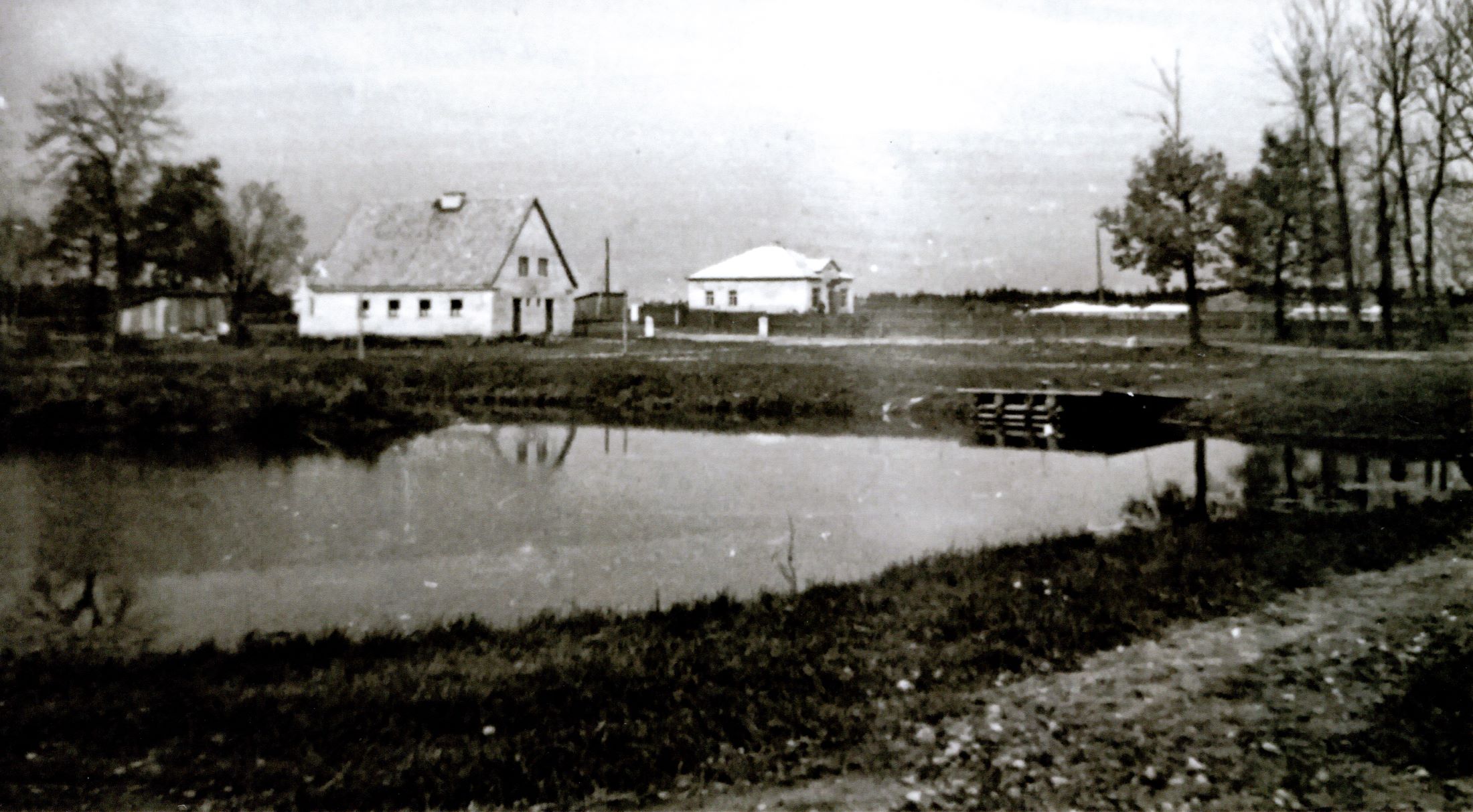 Vaade Kodila külale, veesilma tagant paistavad saun ja kauplusehoone.