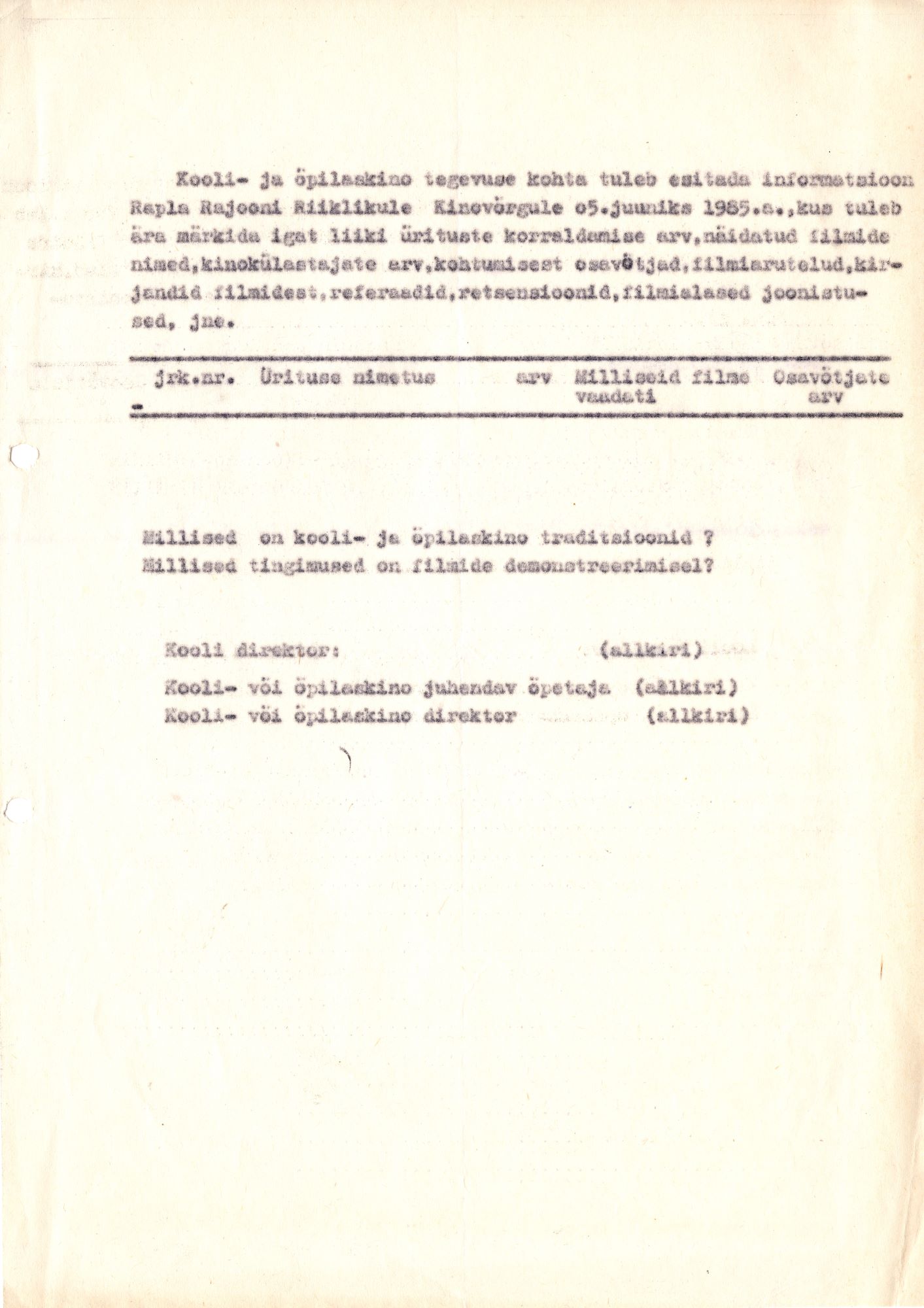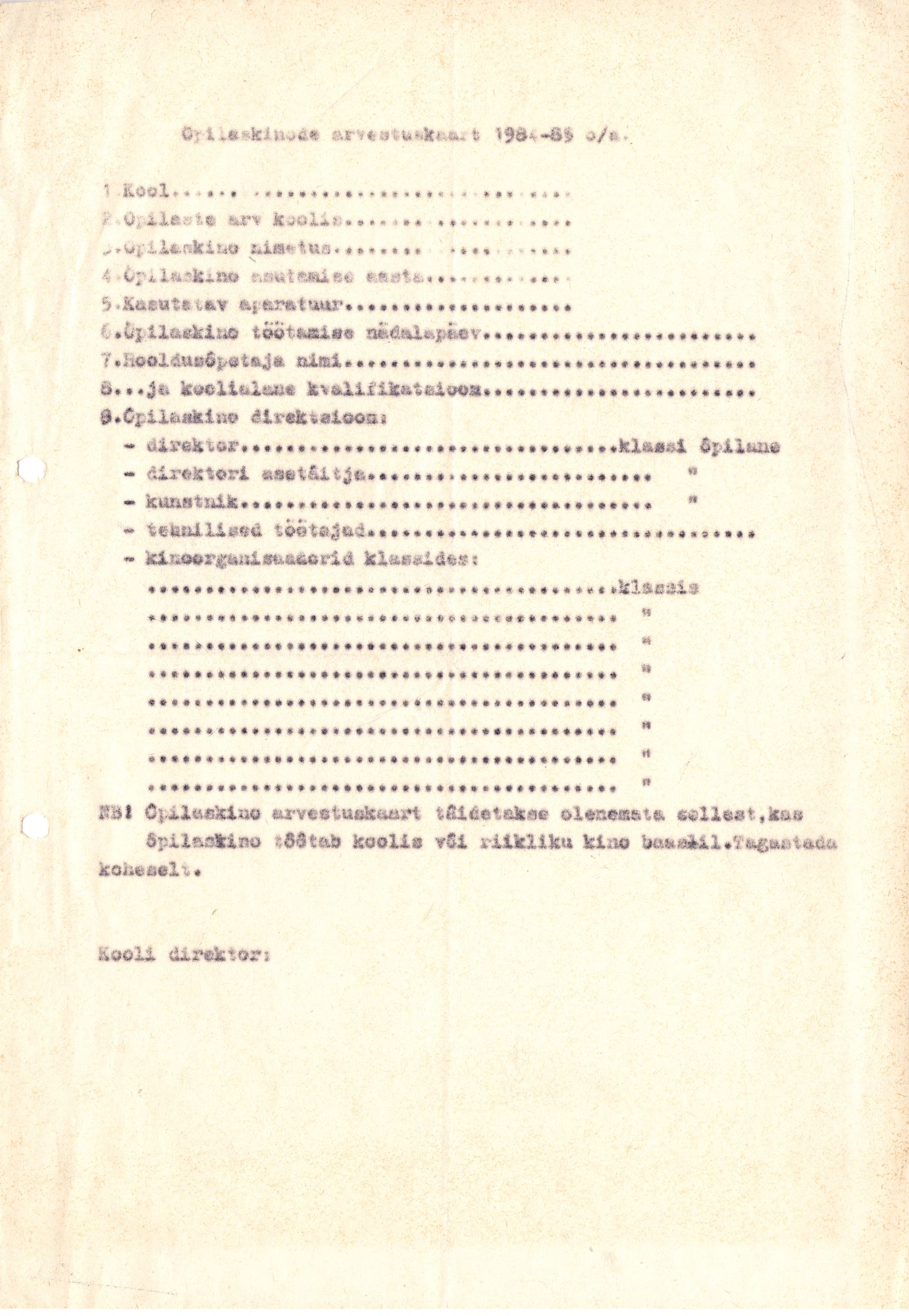 Haimre 8.-klassilise kooli õpilaskino dokumendid aastatest 1976-1987.