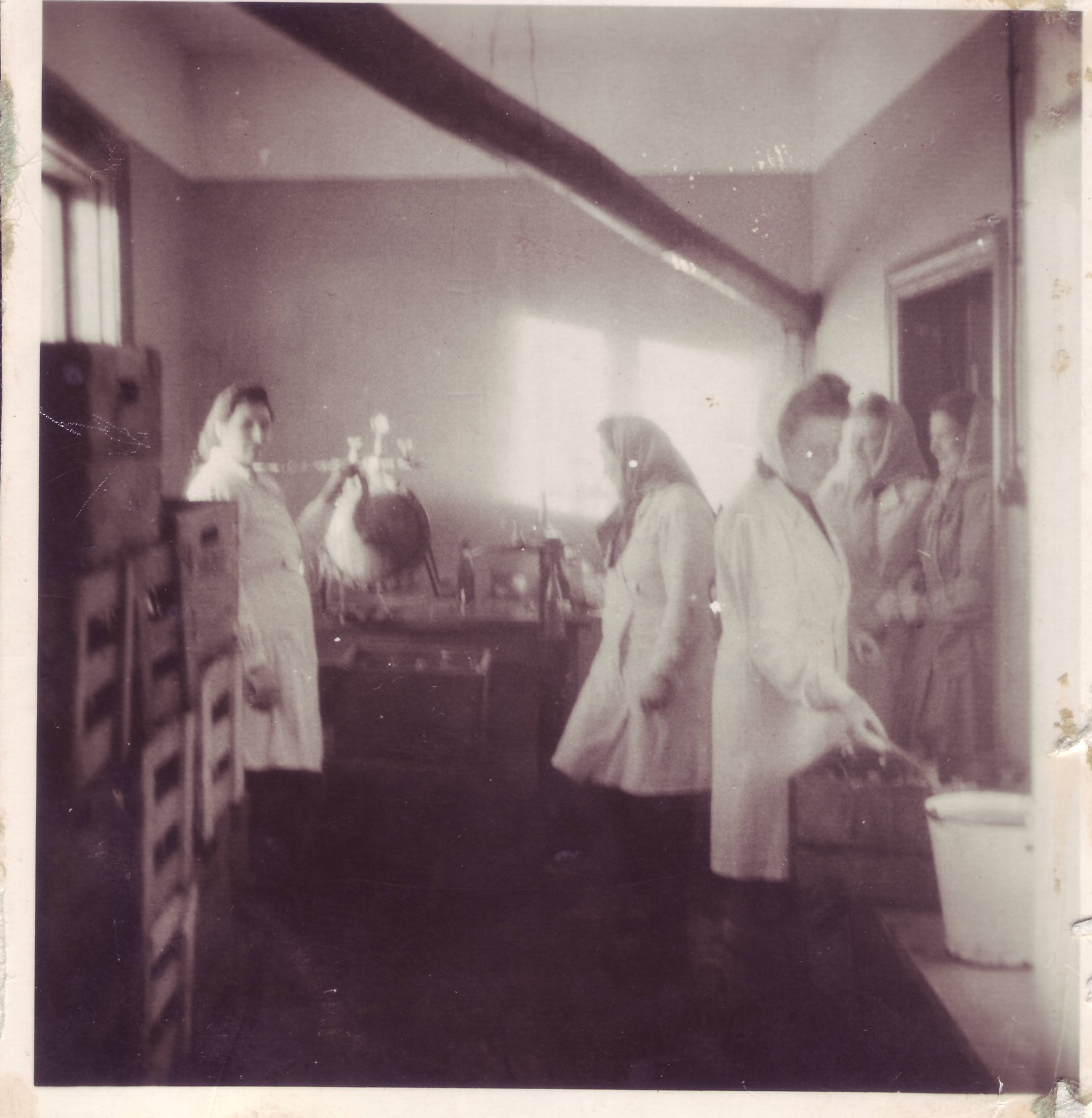 Rapla limonaadivabriku töötajad 1947. aastal. Seisavad: vasakult esimene Ella Saanküll, neljas pr. Kaarlep (ilmselt juhataja).