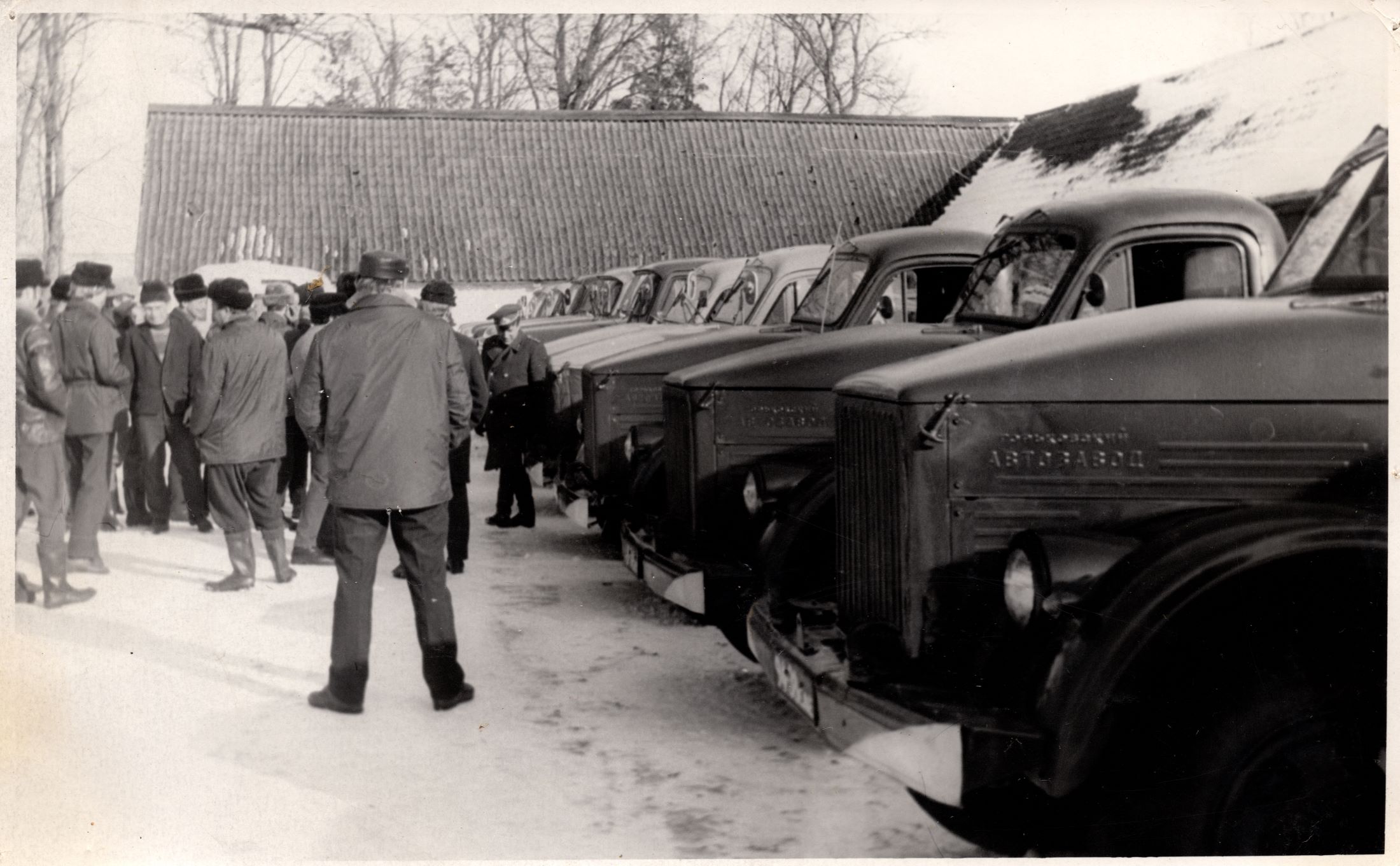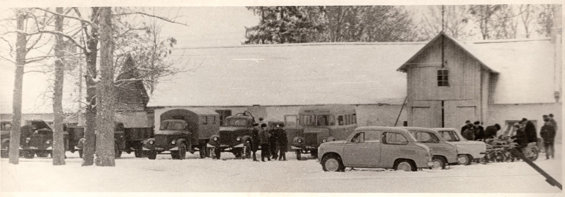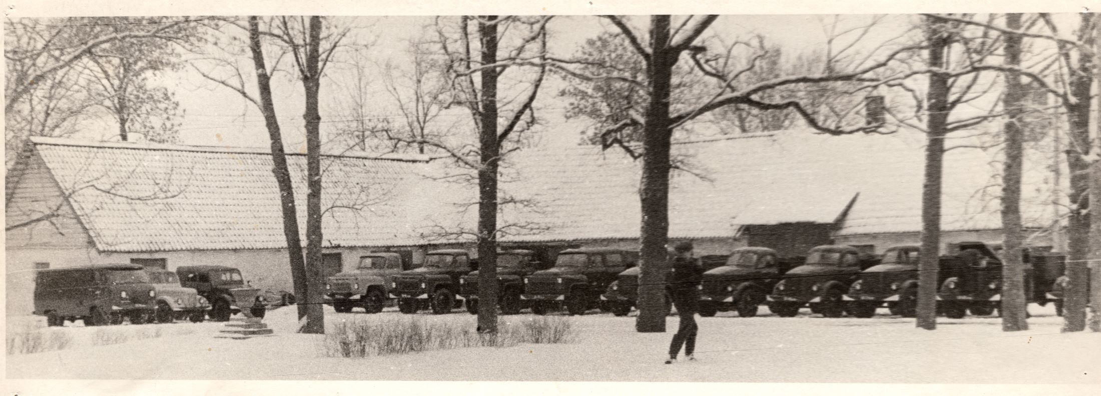 foto 'ulevaatus4' - 70ndate keskpaigas on autosid ja traktoreid nii palju, et ei taha enam platsile ära mahtuda. Tööd jagus kõigile, nii et ei jõutud muidu, kui tuli ka puhkepäevadest lisa võtta.