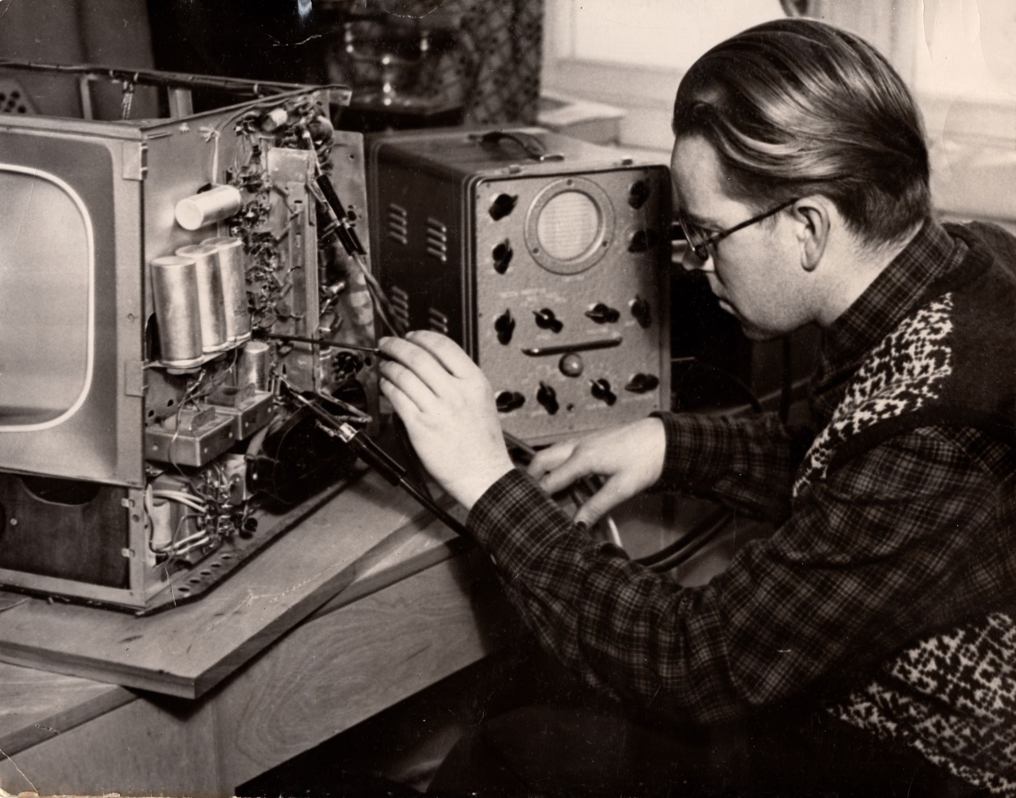 Heiki Kraam televiisorite remontijana arvatavasti 1960ndatel.