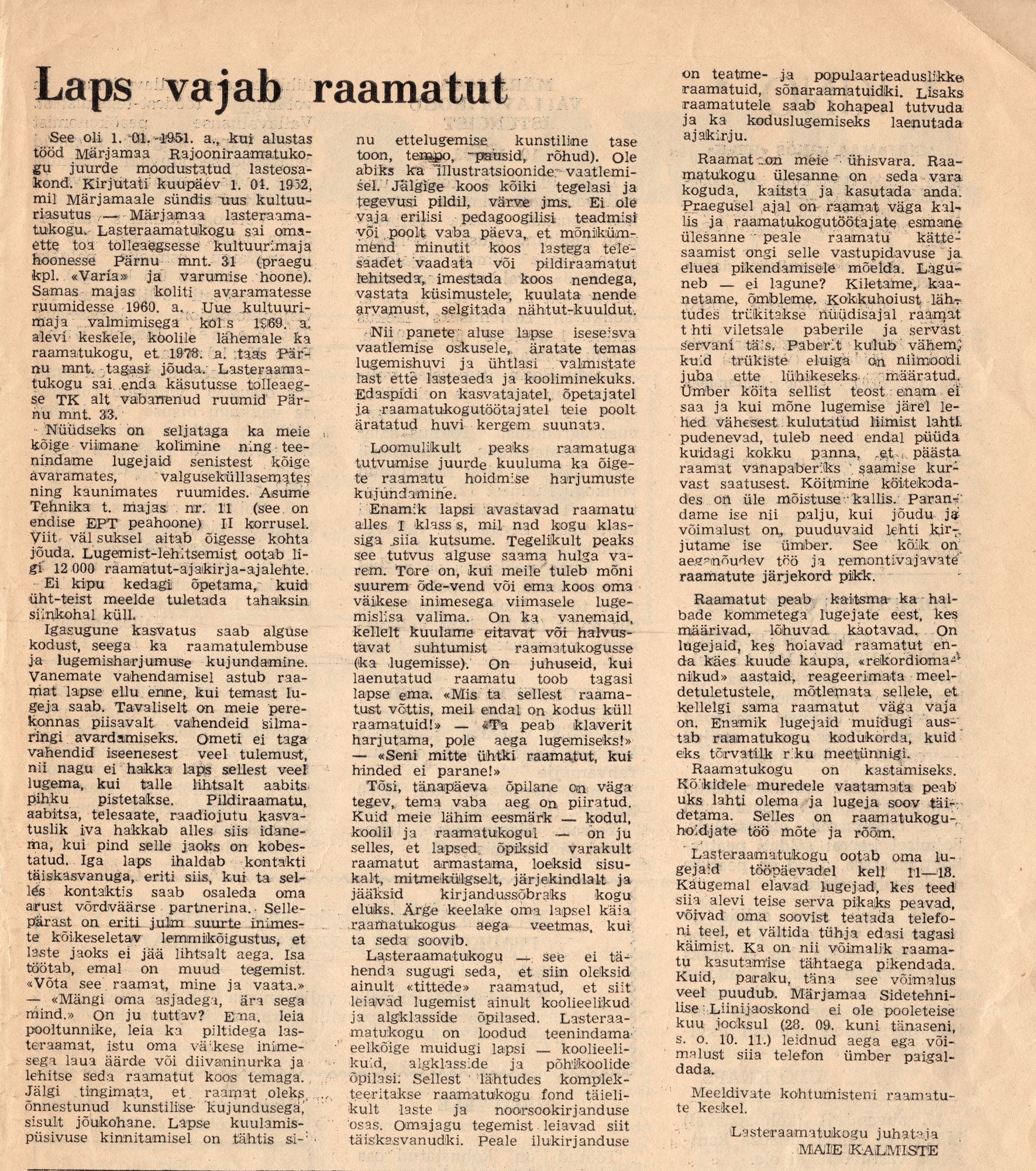 Märjamaa Lasteraamatukogu, kroonikad, fotod, artiklid