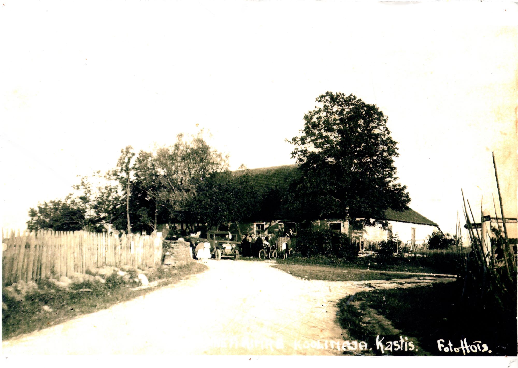 Kasti koolimaja 1932. aasta kevadel - õpilased hakkavad sõitma ekskursioonile (sügisel kolib koolipere uude majja, vana hoone jääb ootama ümberehitust rahvamajaks).