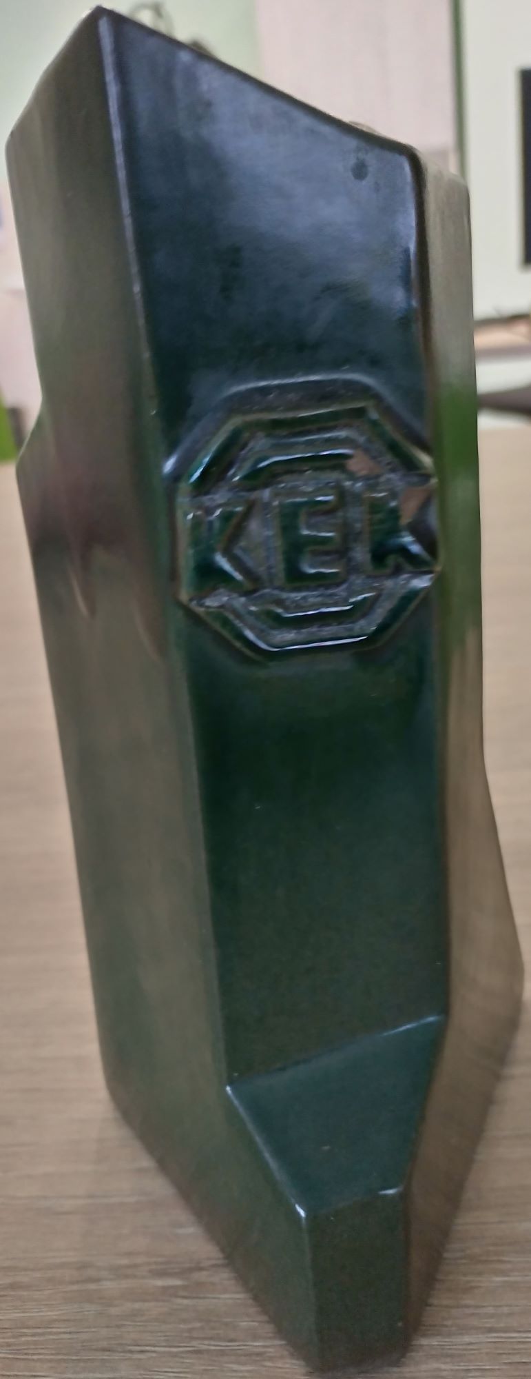 Eesti Kolhoosiehitus (EKE) sümboolikaga märgid ja Rapla KEK-i sümboolikaga vaas. Tehtud ilmselt 1980ndatel. Vaasi kujundanud keraamik Haidi Ratas.