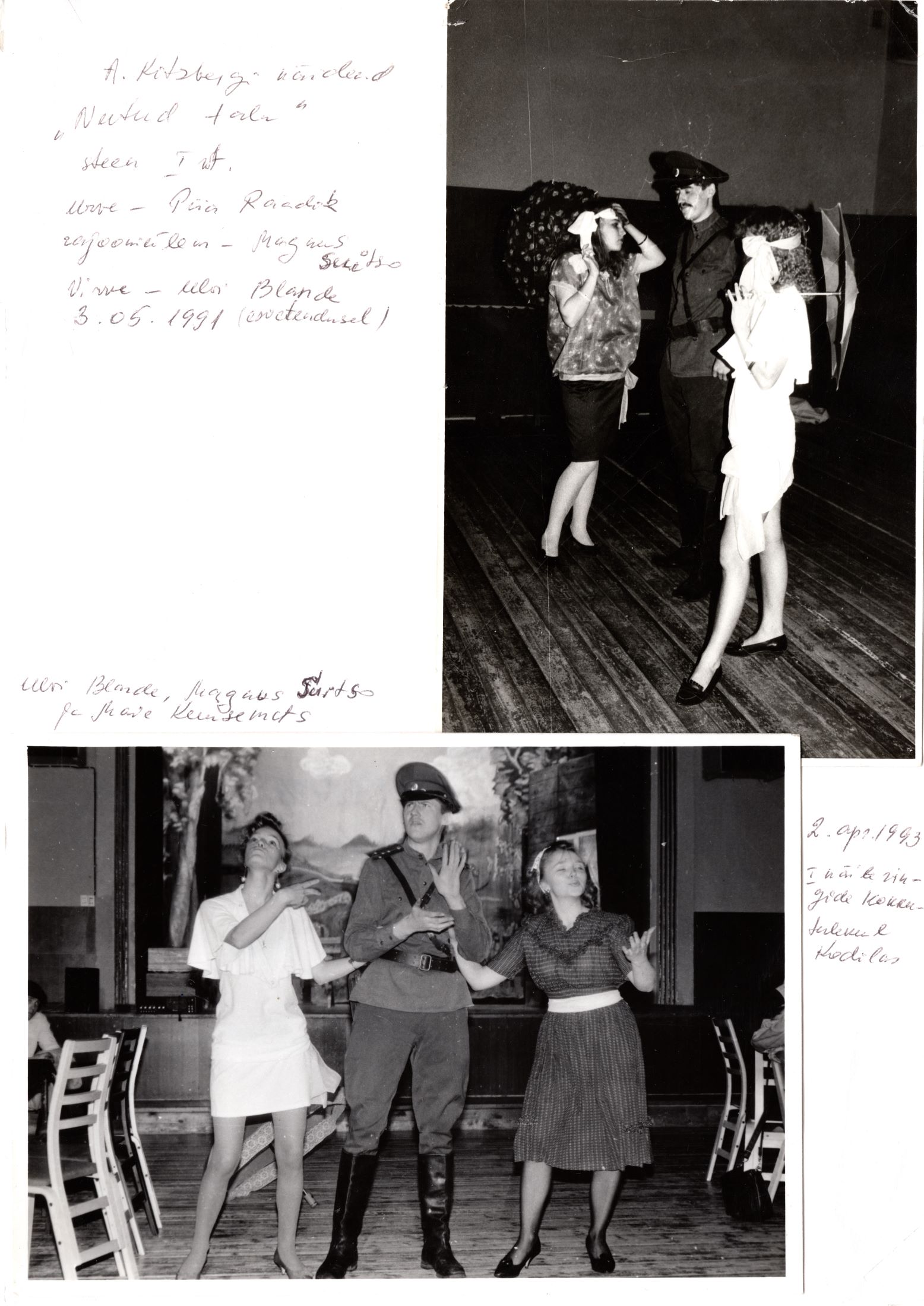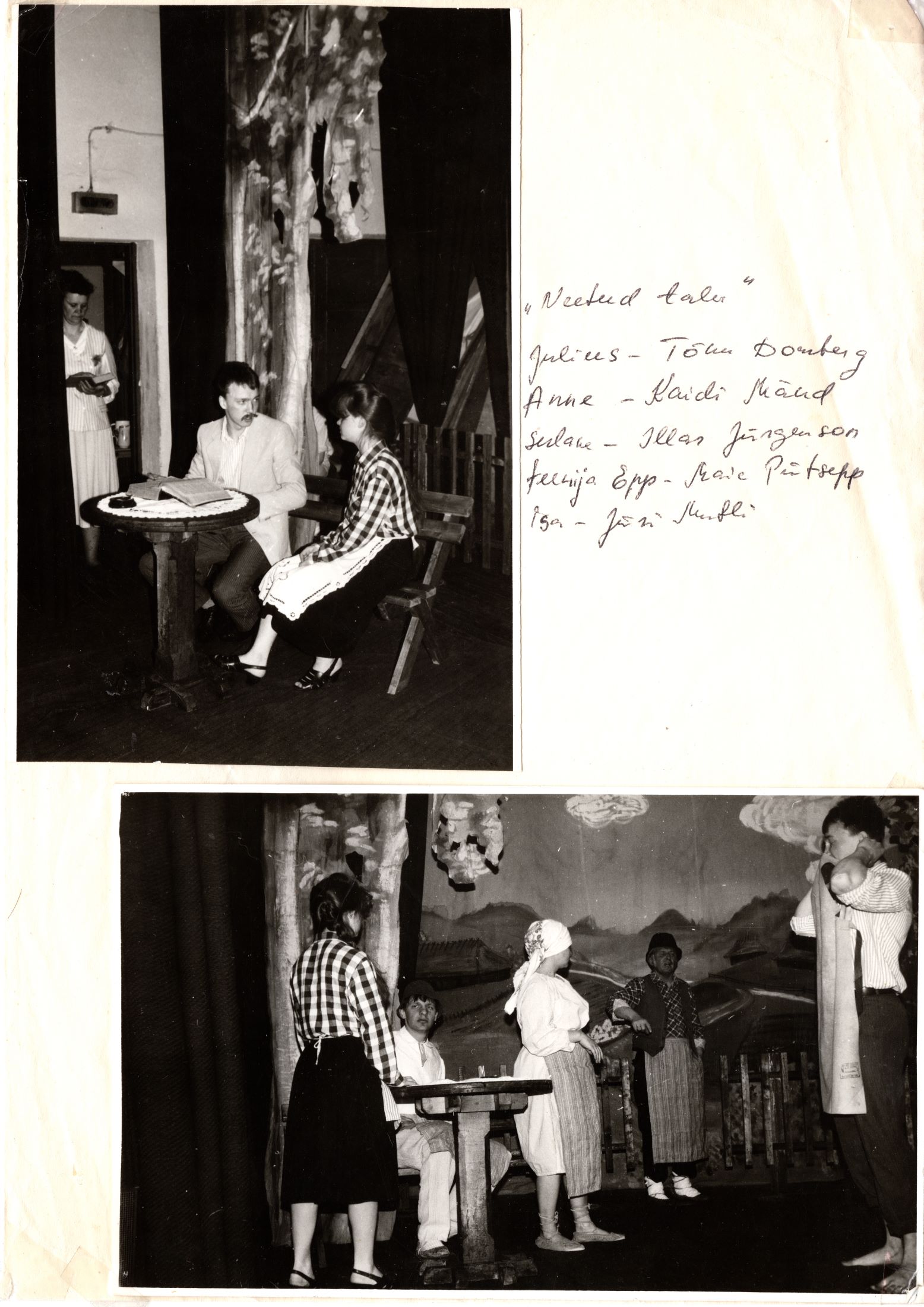 August Kitzberg'i näidend "Neetud talu" Kodila näitetrupi esituses. Fotod esietenduselt 3.05.1991 ja esimeselt näiteringide kokkutulekult Kodilas 2.04.1993.